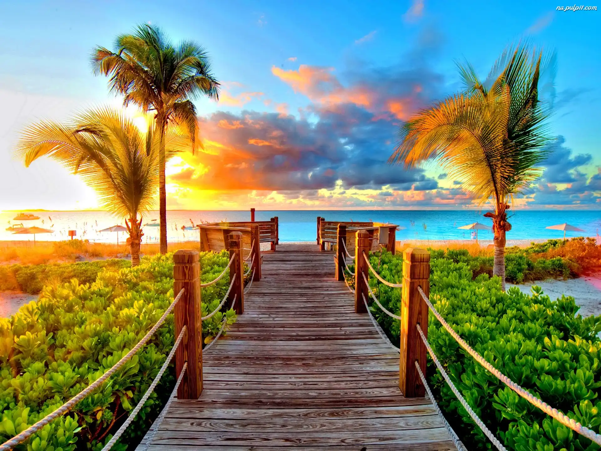 Rośliny, Palmy, Morze, Molo Na Pulpit