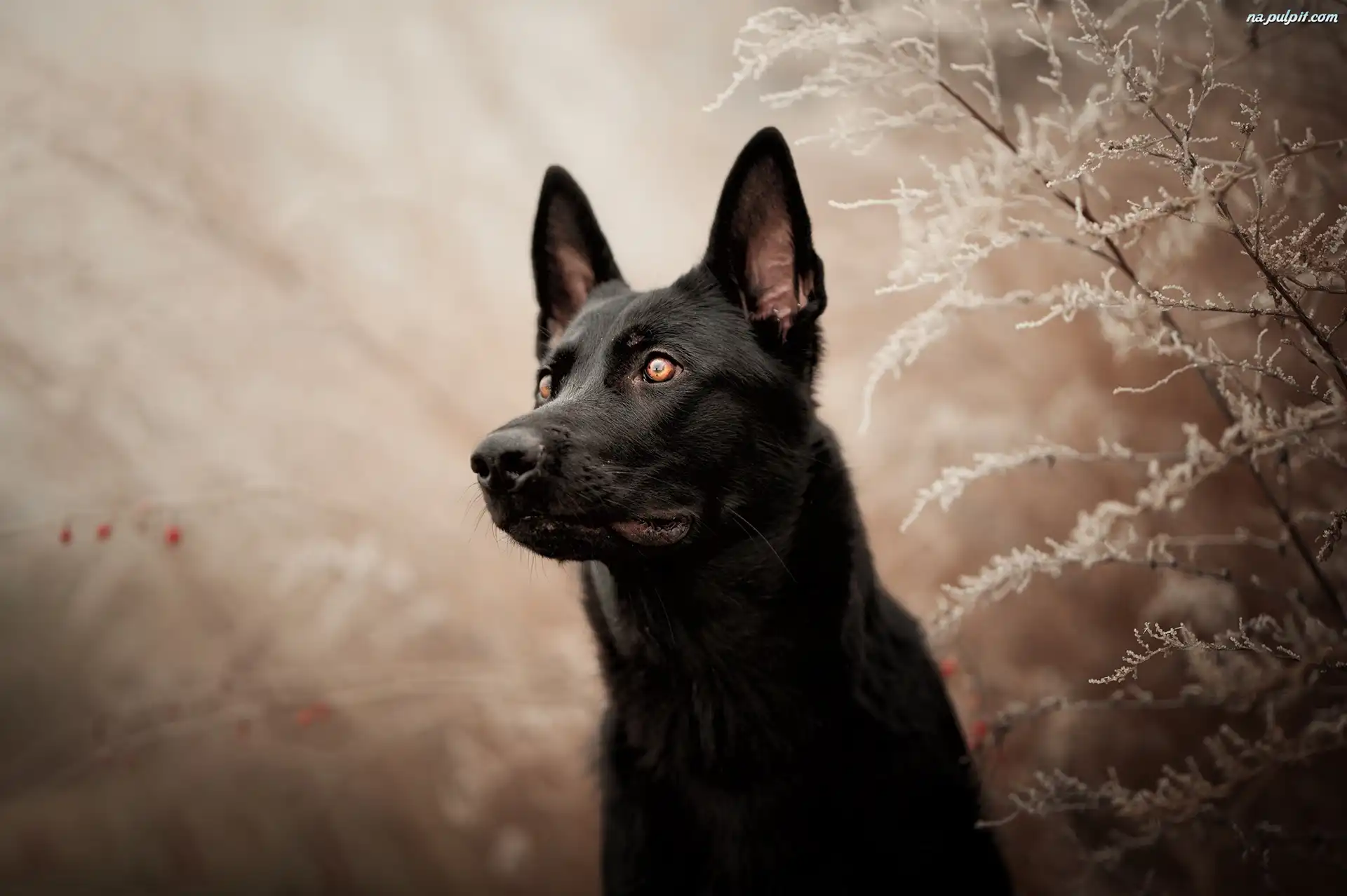 Rośliny, Czarny owczarek niemiecki, Pies, Oszronione Na Pulpit