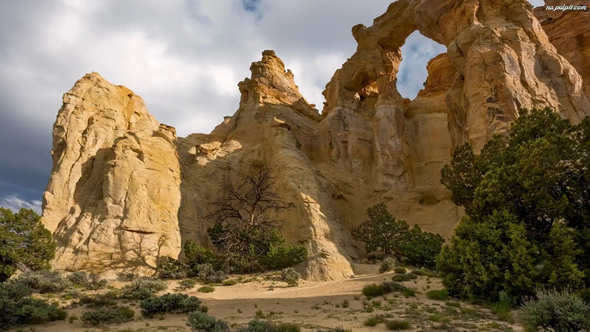 Rośliny, Stan Utah, Piaskowiec, Hrabstwo Kane, Pomnik Narodowy Grand Staircase-Escalante National Monument, Stany Zjednoczone, Łuk skalny Grosvenor Arch Na Pulpit |
