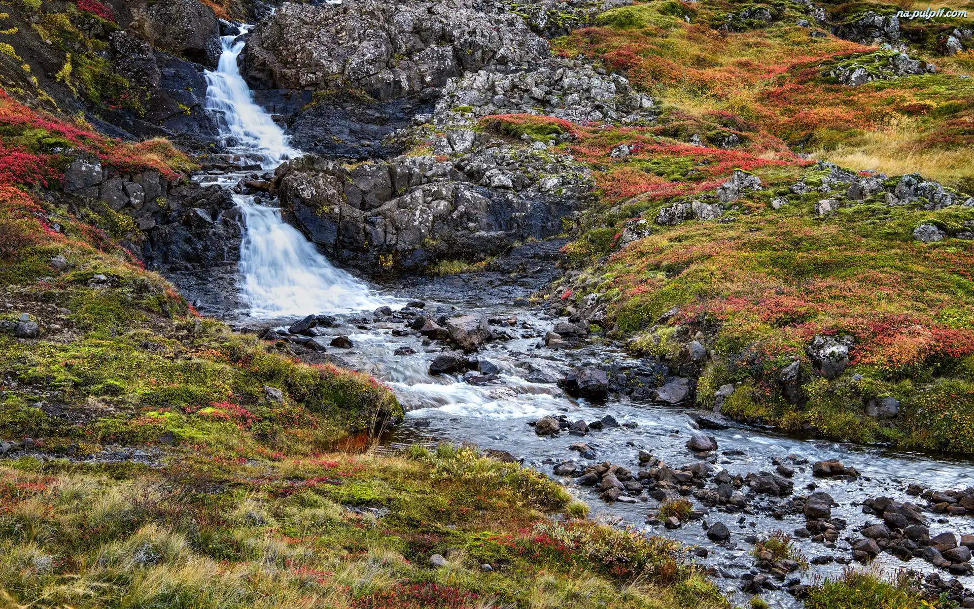 Rośliny, Rzeka, Skały, Kamienie Na Pulpit