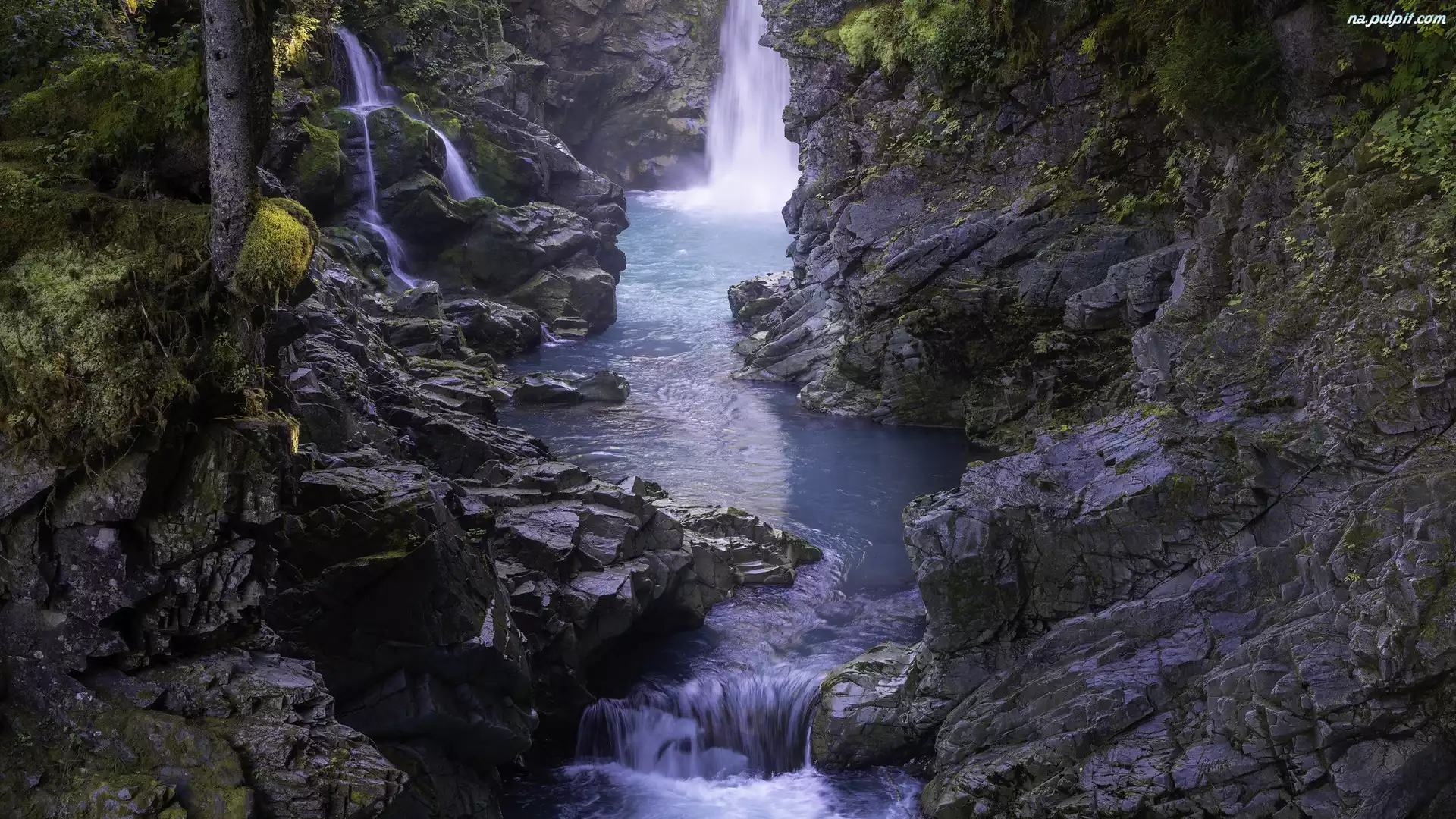 Skały, Wodospad, Rzeka, Rośliny Na Pulpit