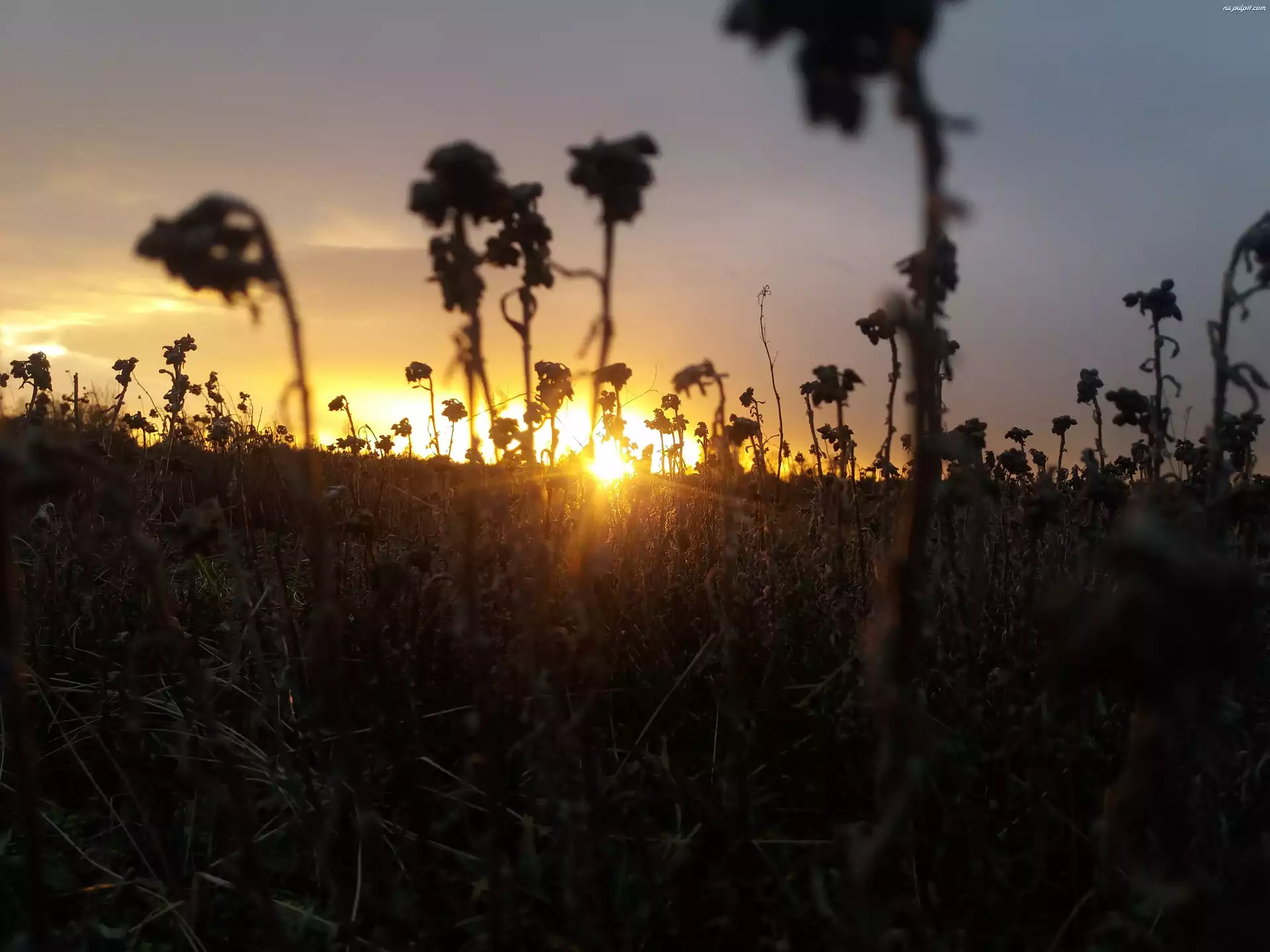 Rośliny, Zachód słonca, Suche Na Pulpit