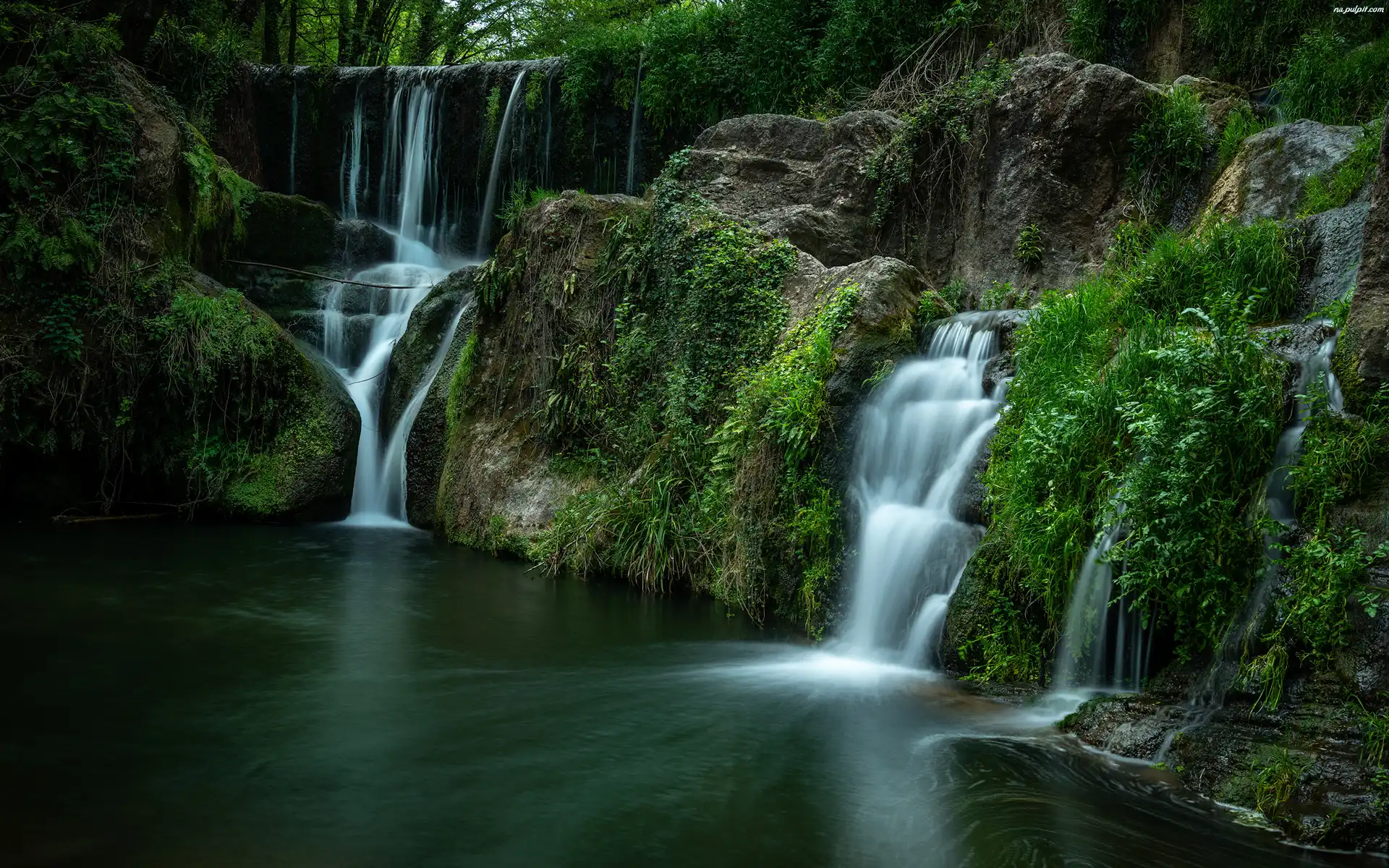 Rośliny, Las, Wodospad, Skały Na Pulpit