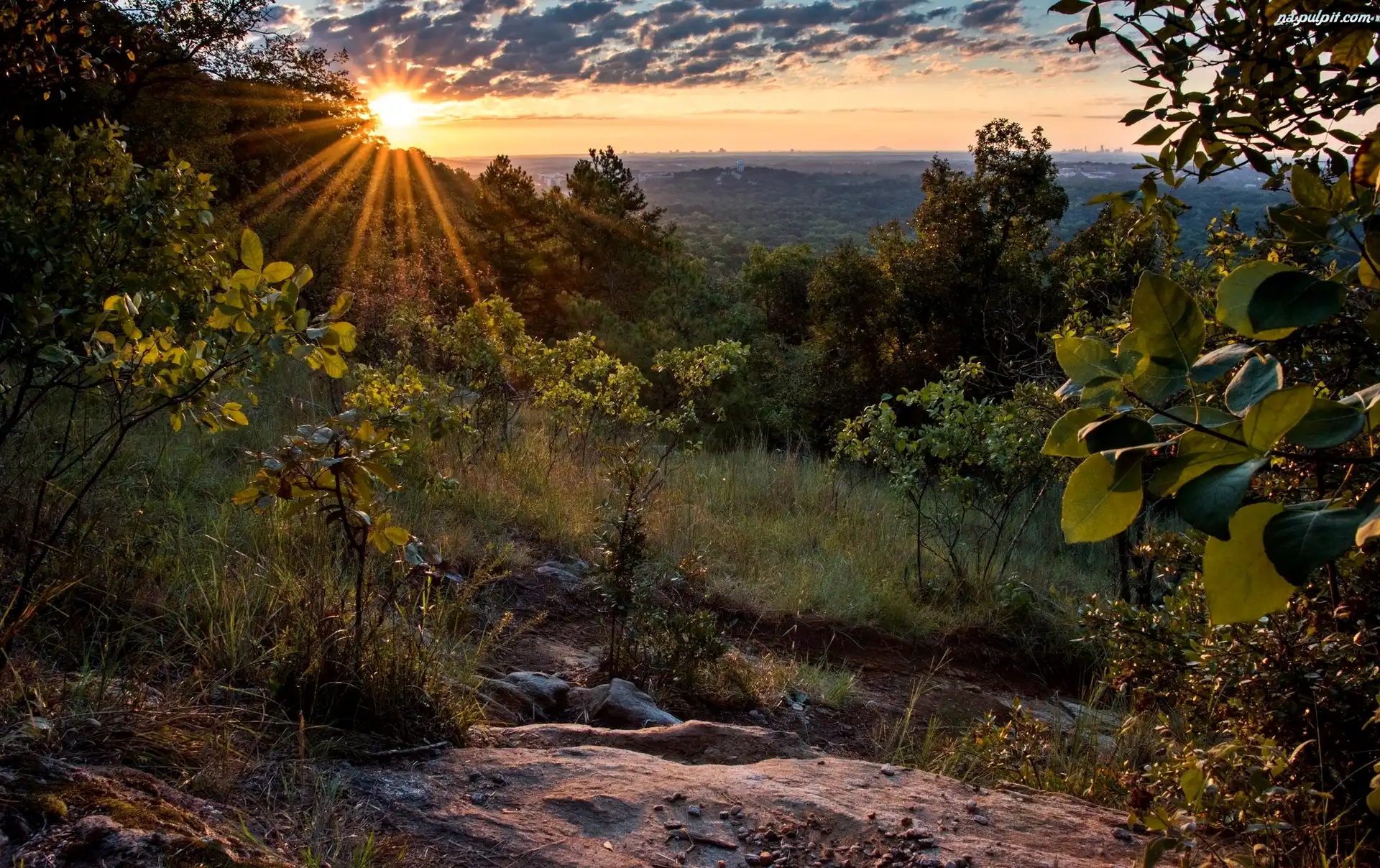 Rośliny, Promienie, Drzewa, Wzgórza, Słońca Na Pulpit