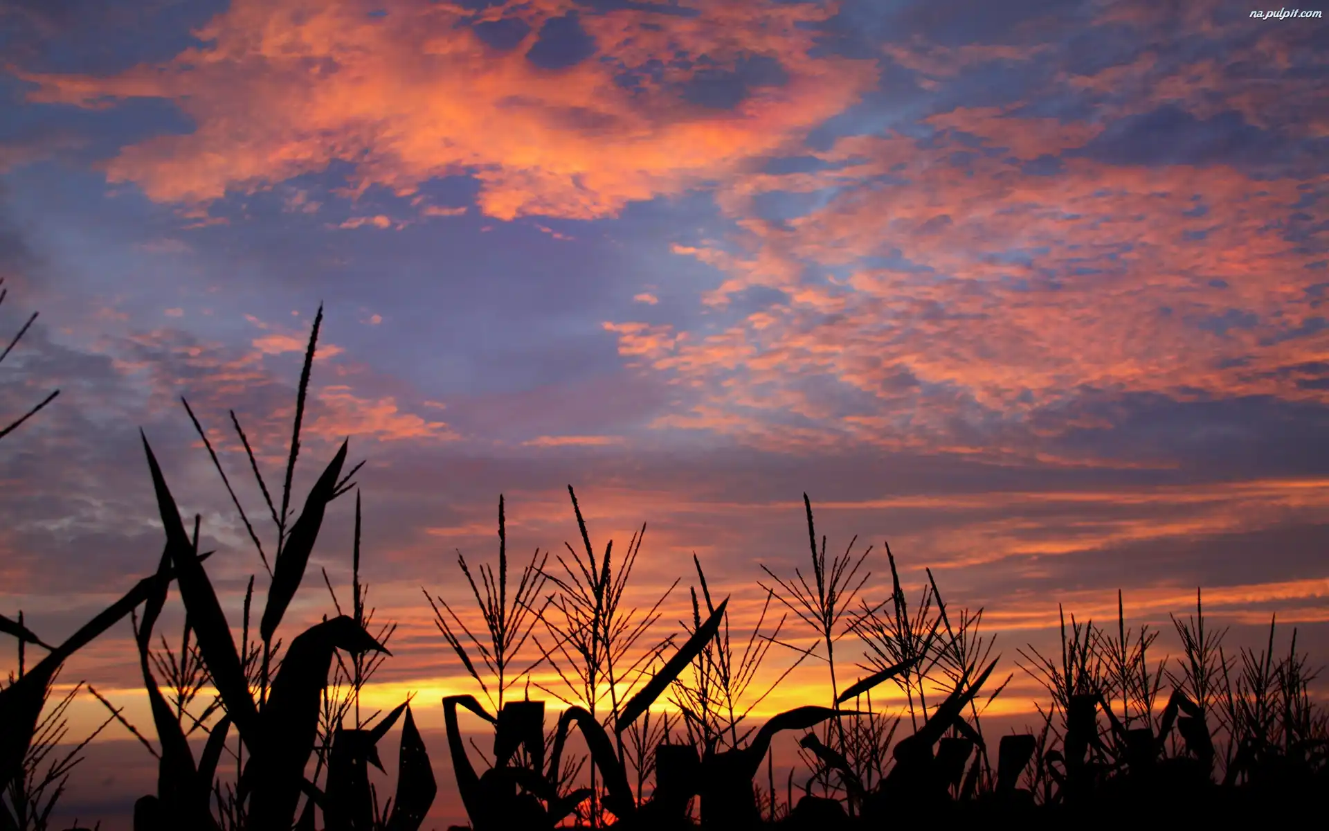 Rośliny, Słońca, Zachód, Chmury Na Pulpit