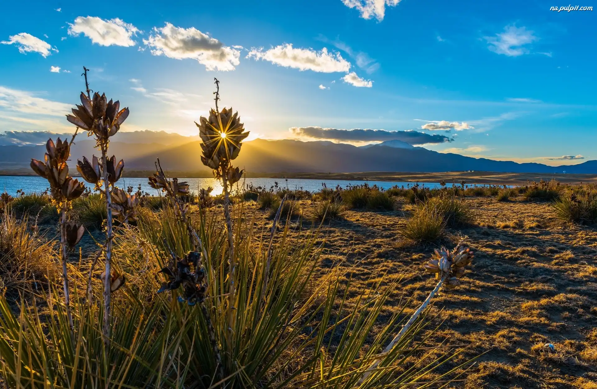 Rośliny, Góry, Słońca, Zachód, Rzeka Na Pulpit