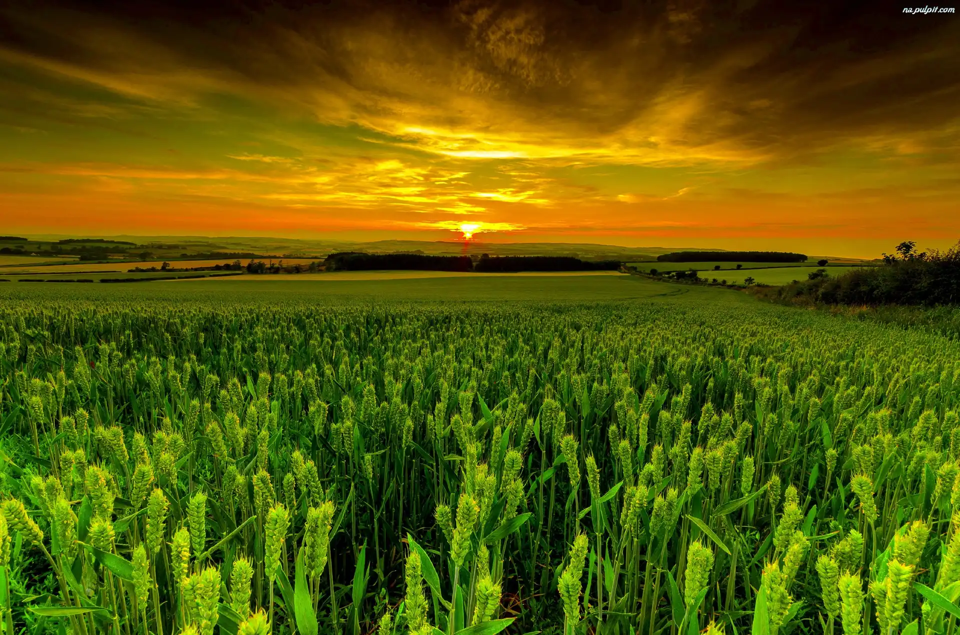 Rośliny, Słońca, Zachód, Pola