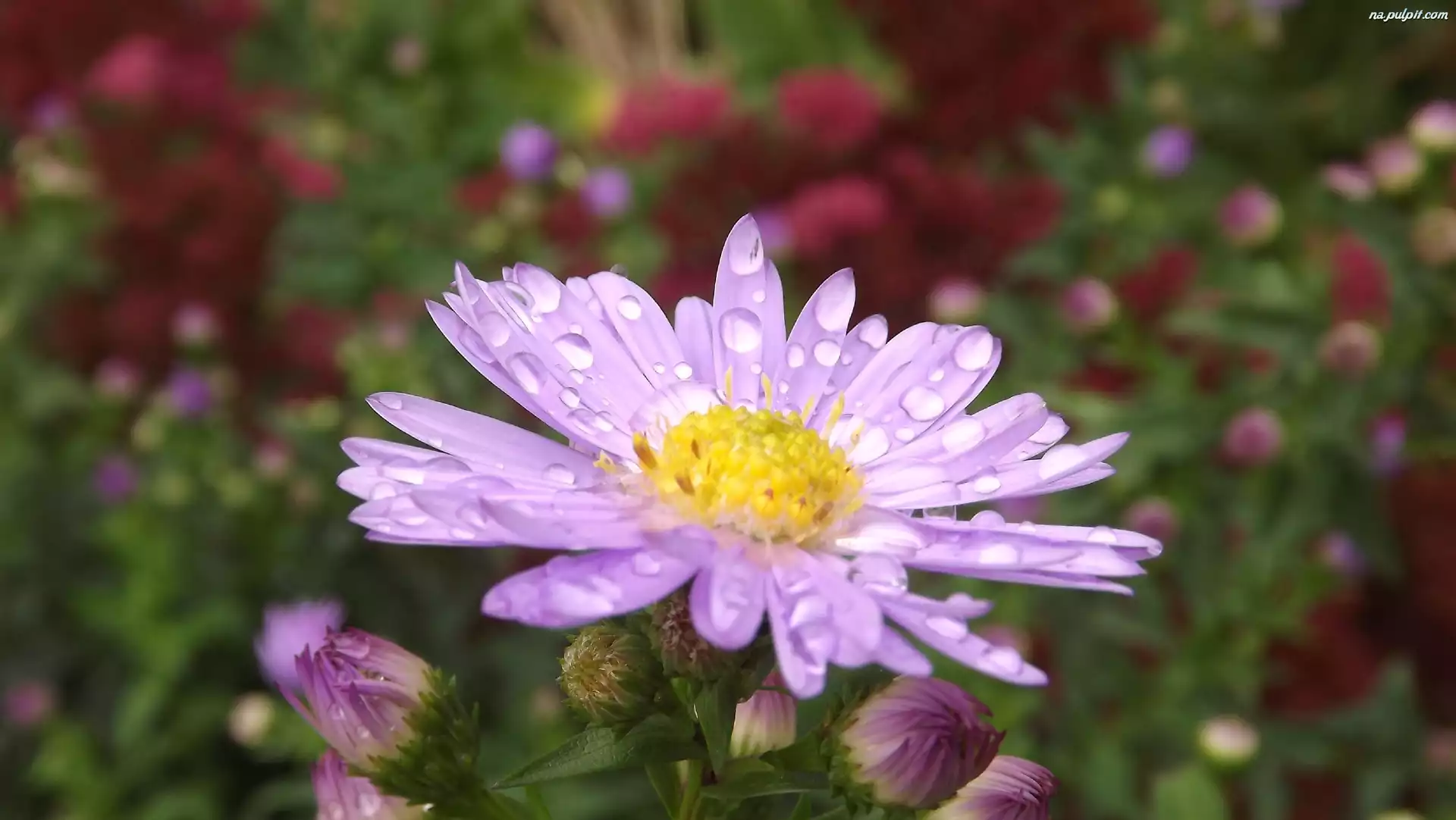 Rosy, Fioletowy, Aster, Kropelki Na Pulpit