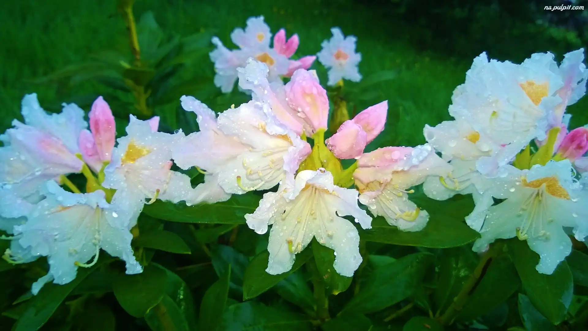 Rosy, Rododendron, Biały, Krople Na Pulpit