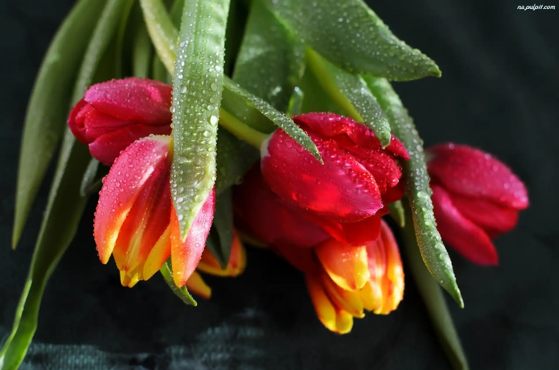 Rosy, Tulipanów, Bukiet, Krople