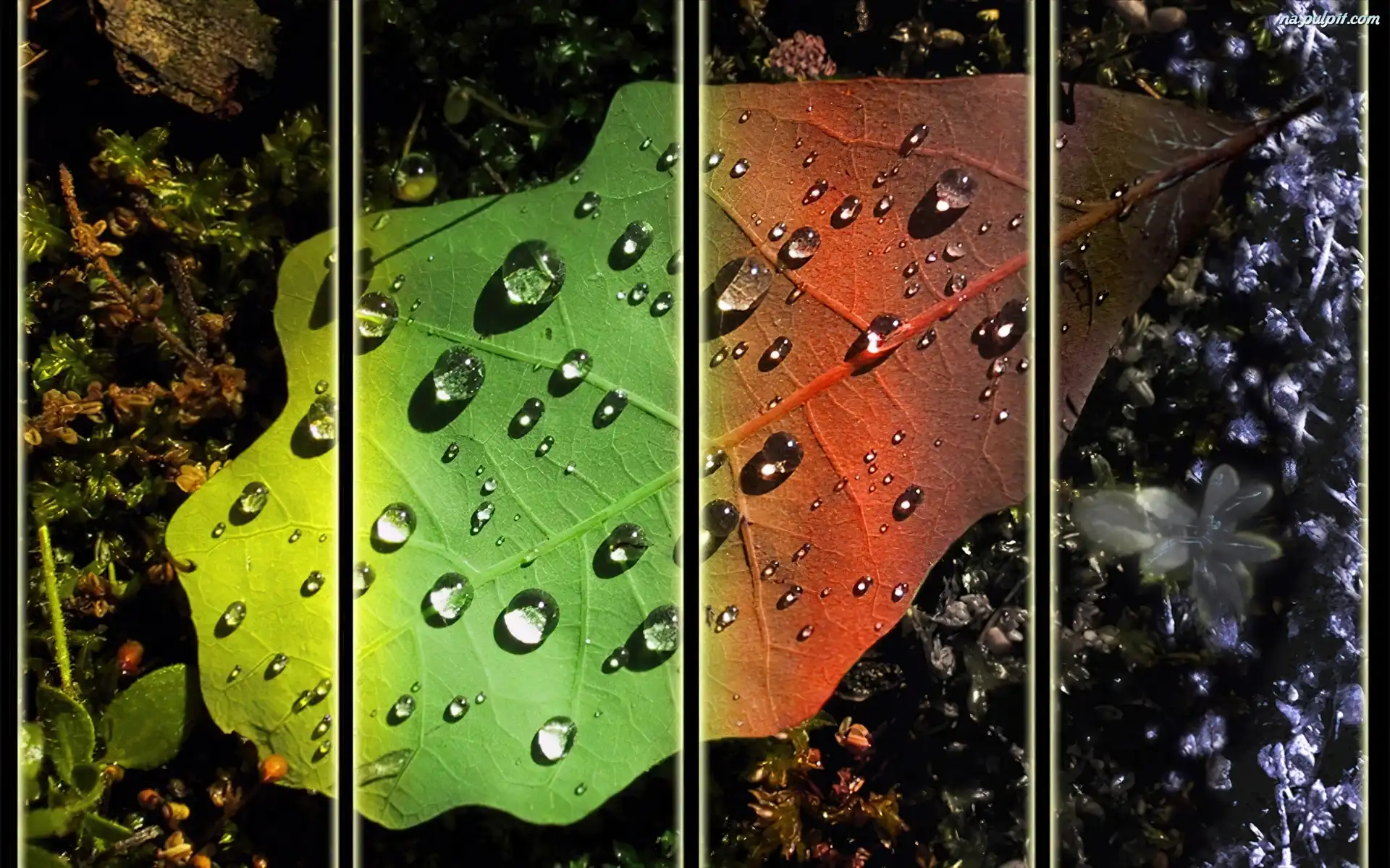 Rosy, Liść, Kolorowy, Krople Na Pulpit