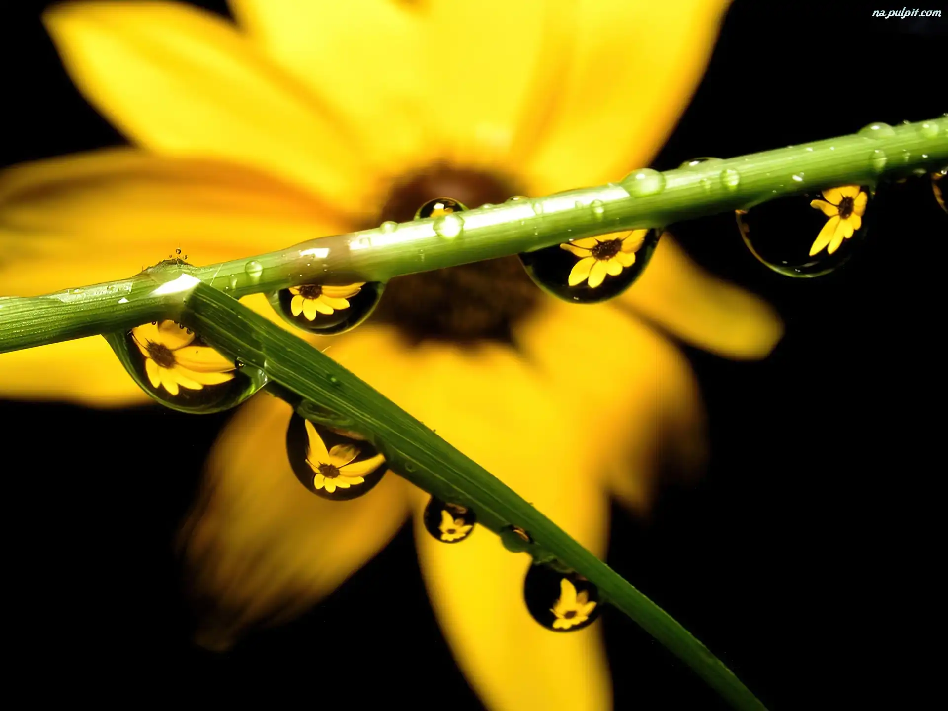 Rosy, Trawa, Kwiat, Żółty, Krople Na Pulpit