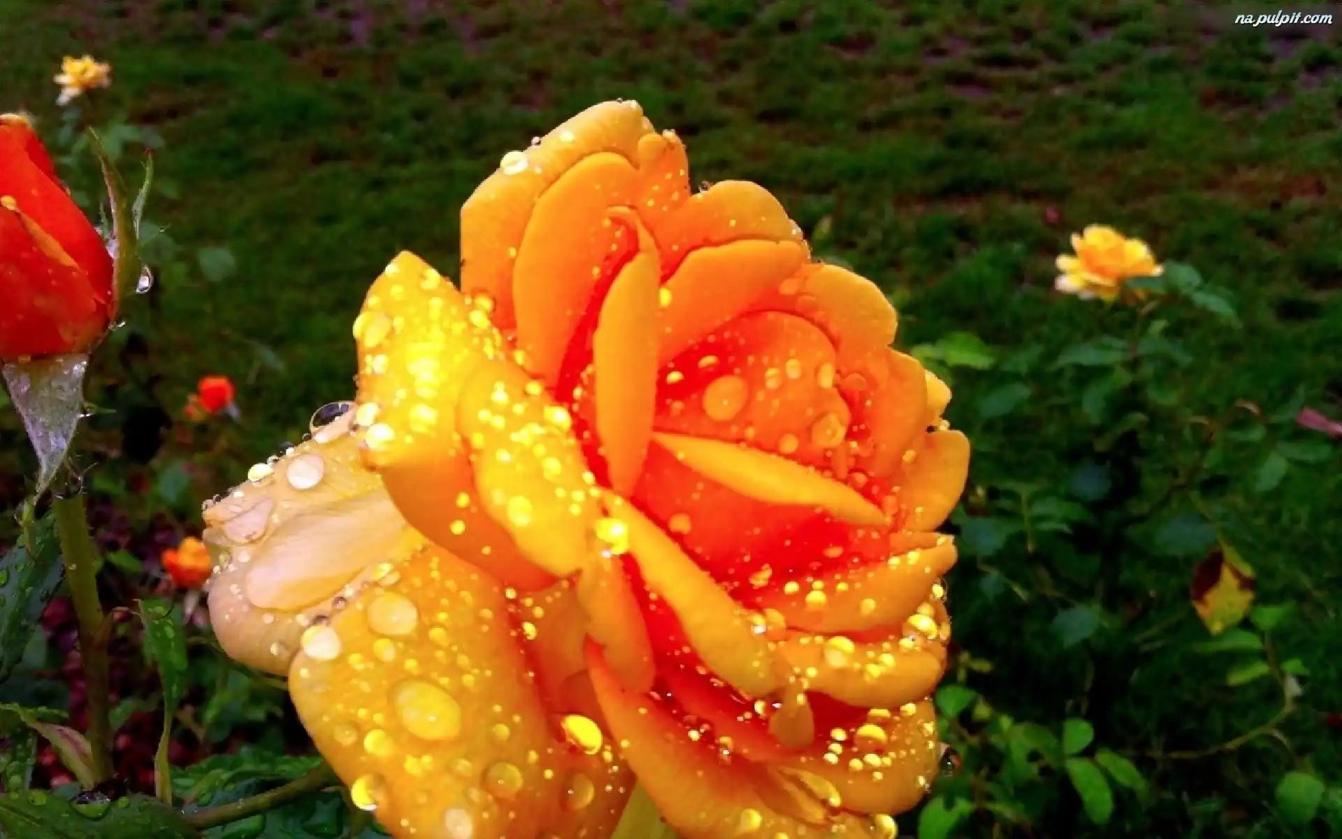 Rosy, Pąk, Pomarańczowa, Róża, Krople Na Pulpit