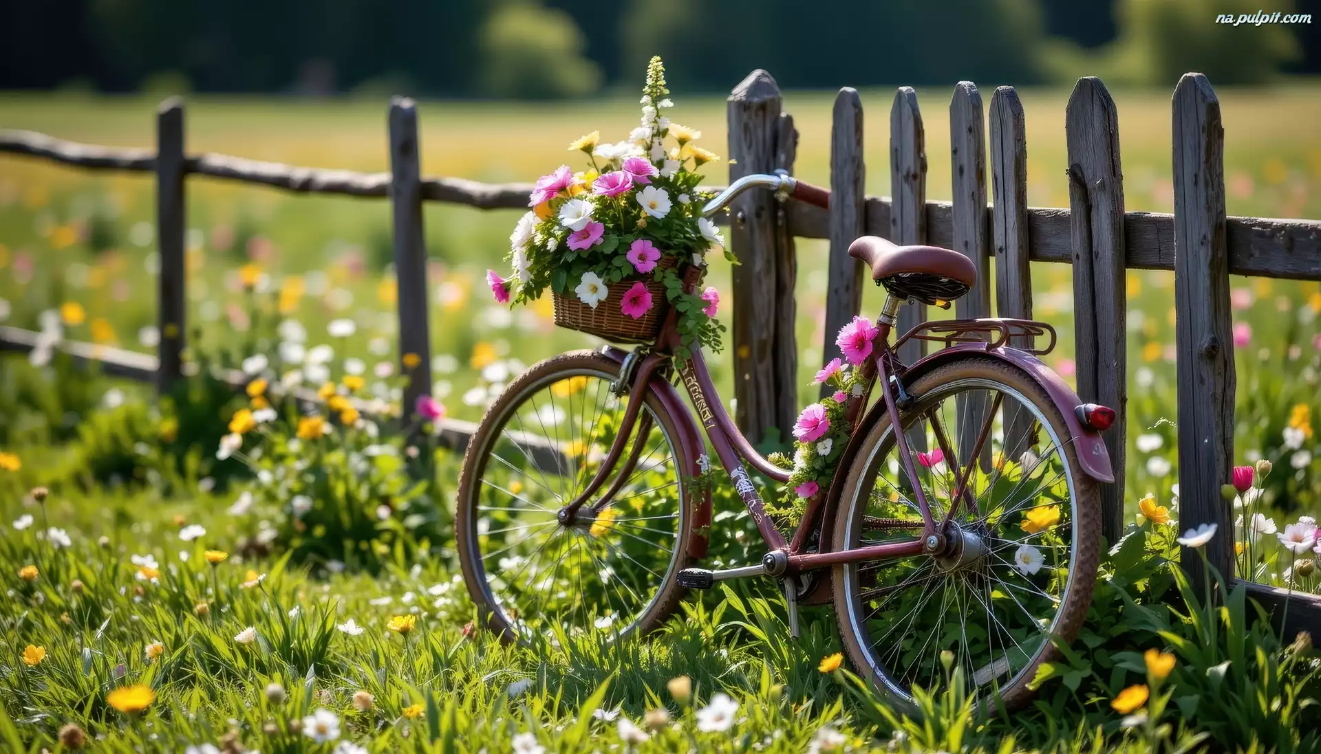 Płot, Rower, Kwiaty, Łąka, Koszyk Na Pulpit