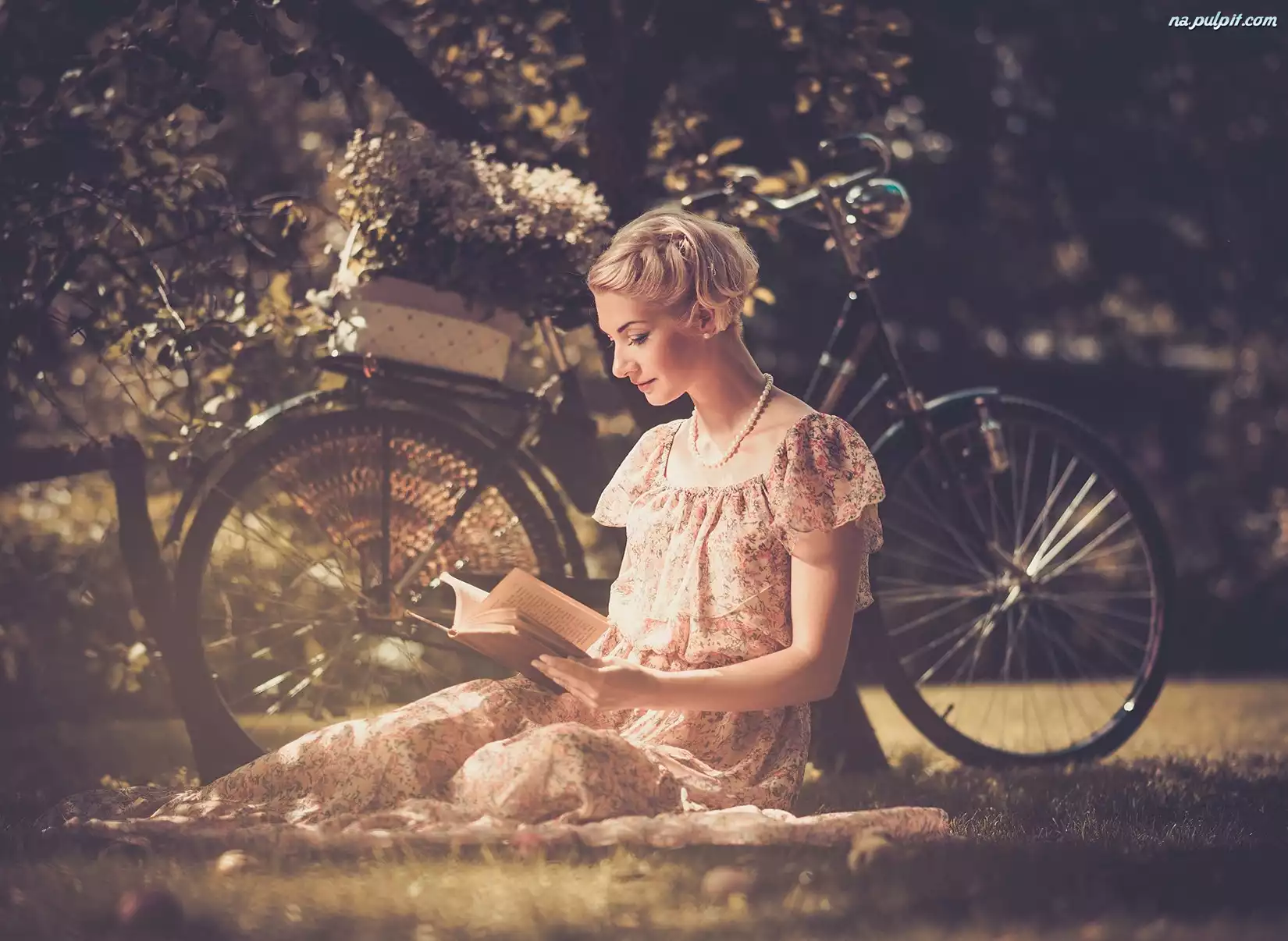 Rower, Kobieta, Retro, Książka Na Pulpit