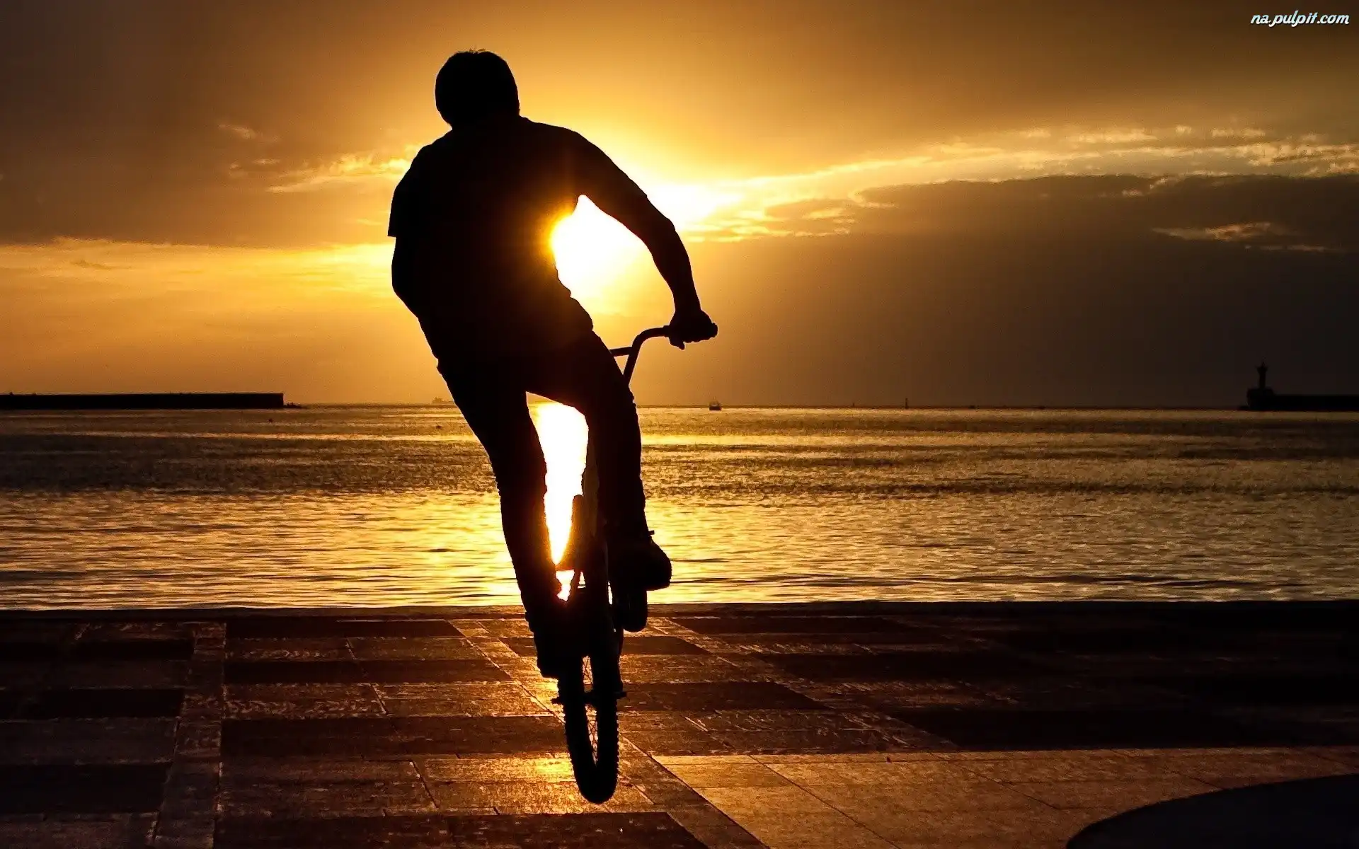 Rowerzysta, Słońca, Zachód, Morze Na Pulpit