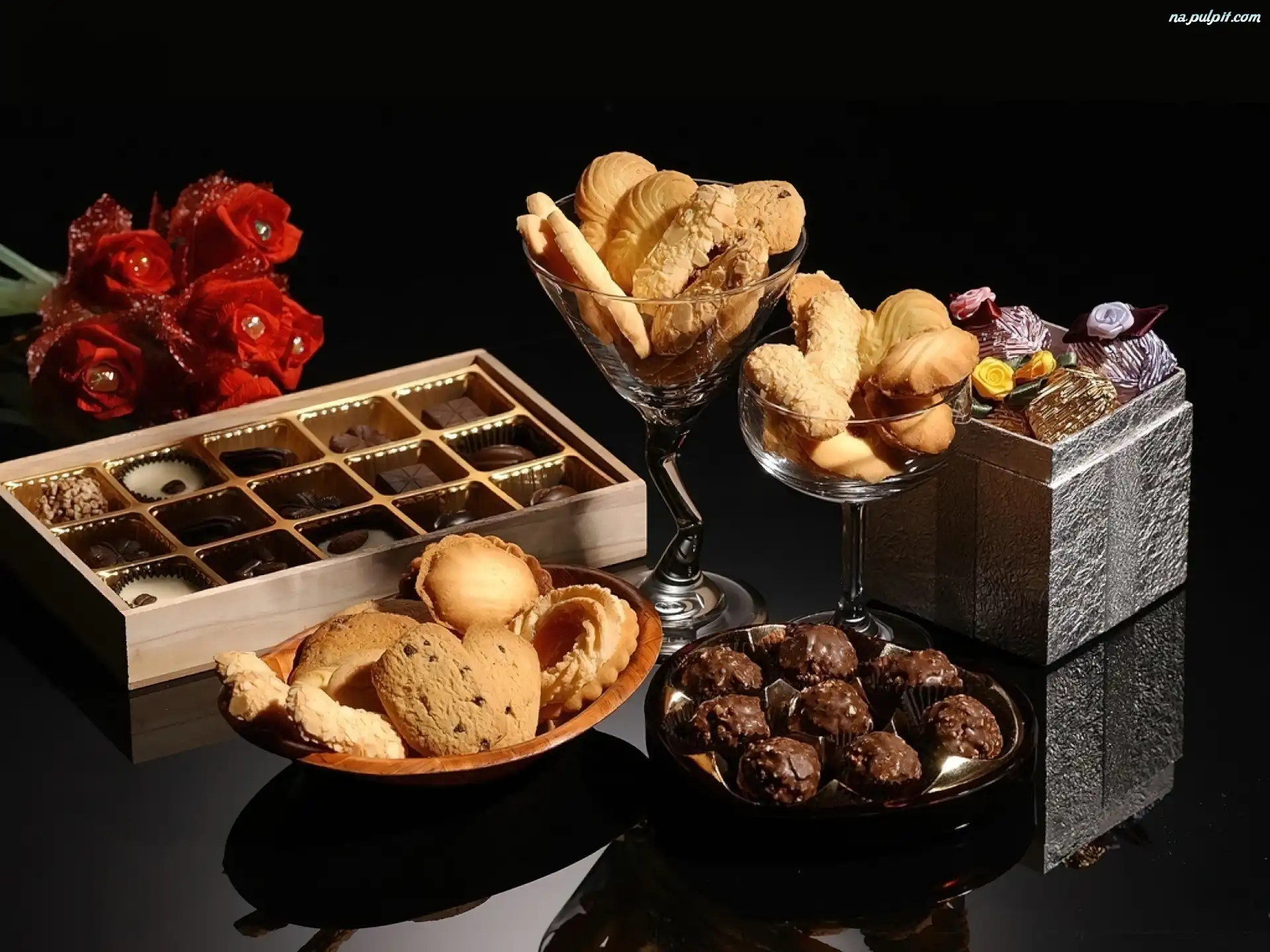 Róż, Czekoladki, Ciastka, Bukiet Na Pulpit