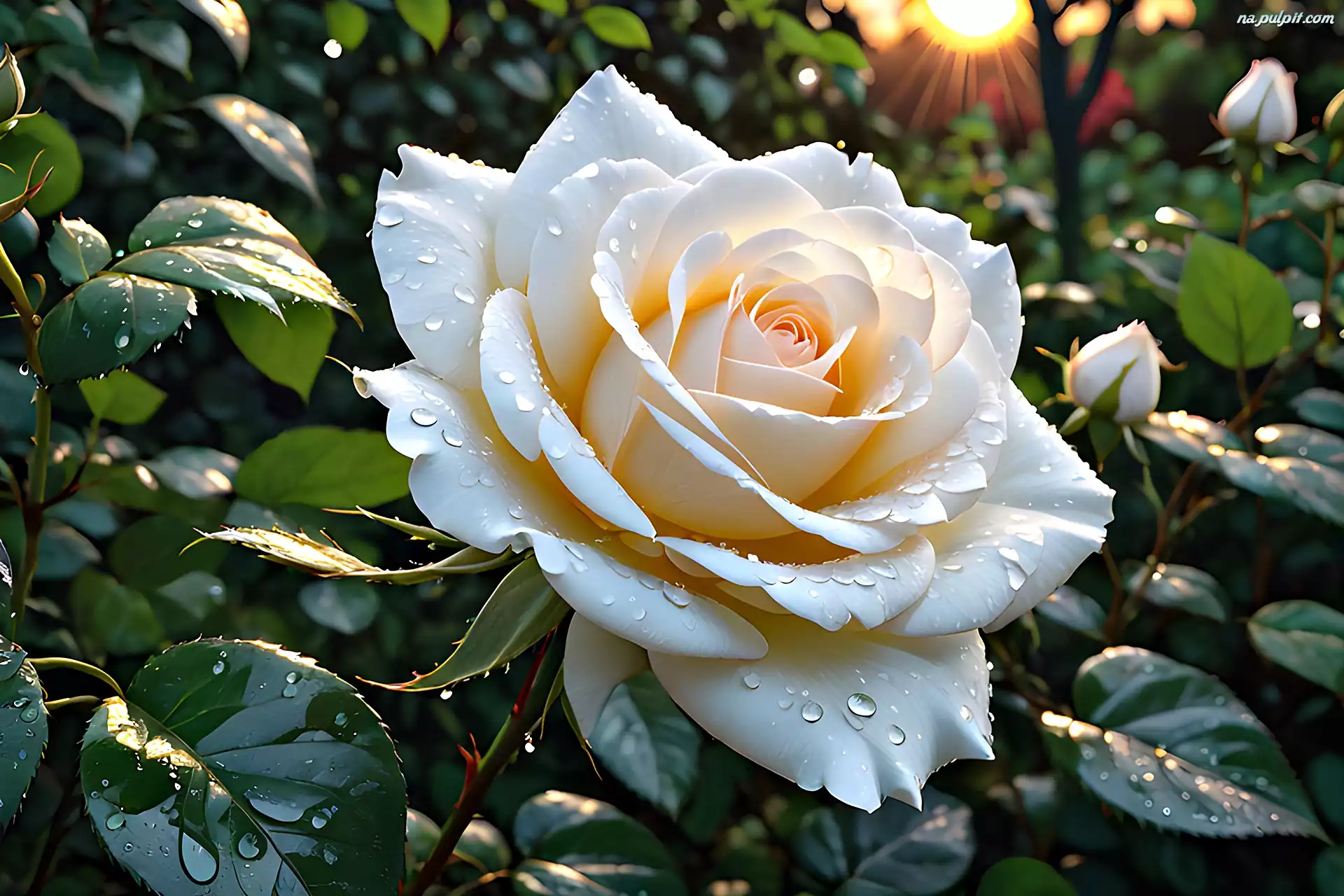 Krople, Róża, Biała, Grafika, Kwiat Na Pulpit