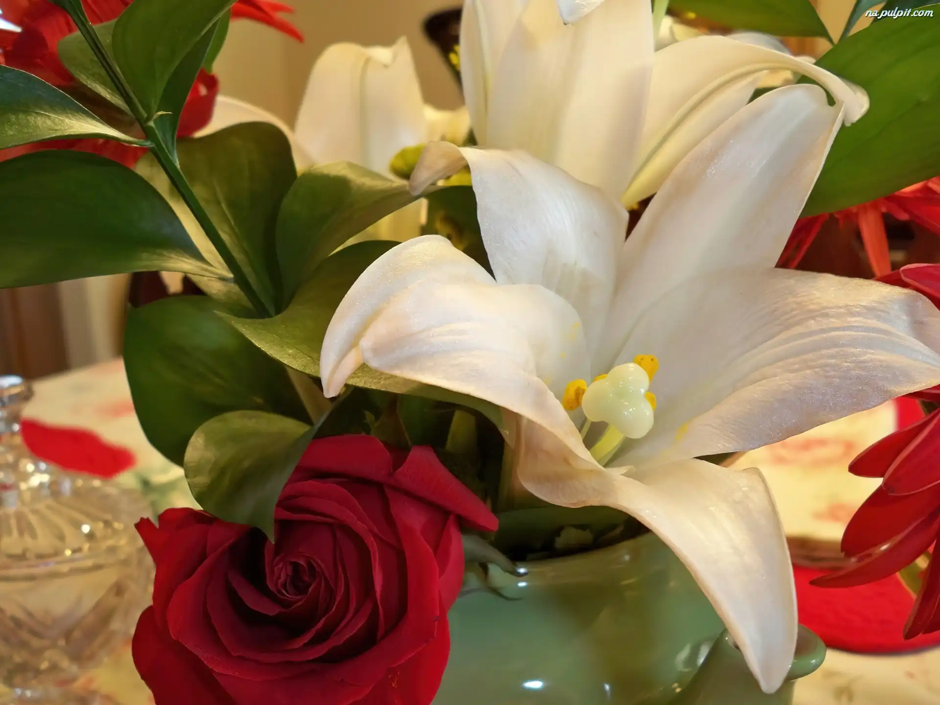 Róża, Kwiatów, Bukiet, Lilie Na Pulpit