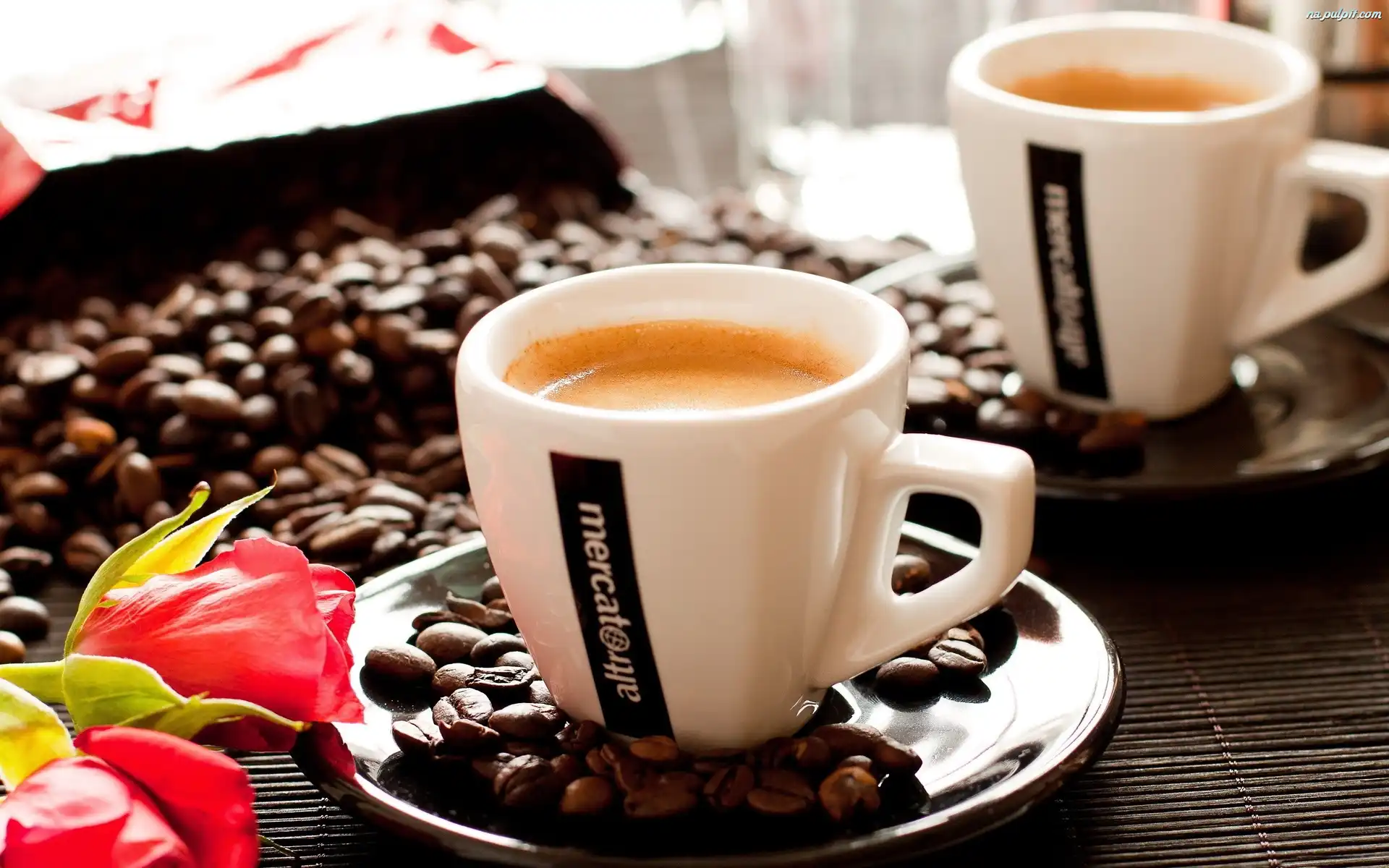 Róża, Kawa, Filiżanki, Ziarna Na Pulpit