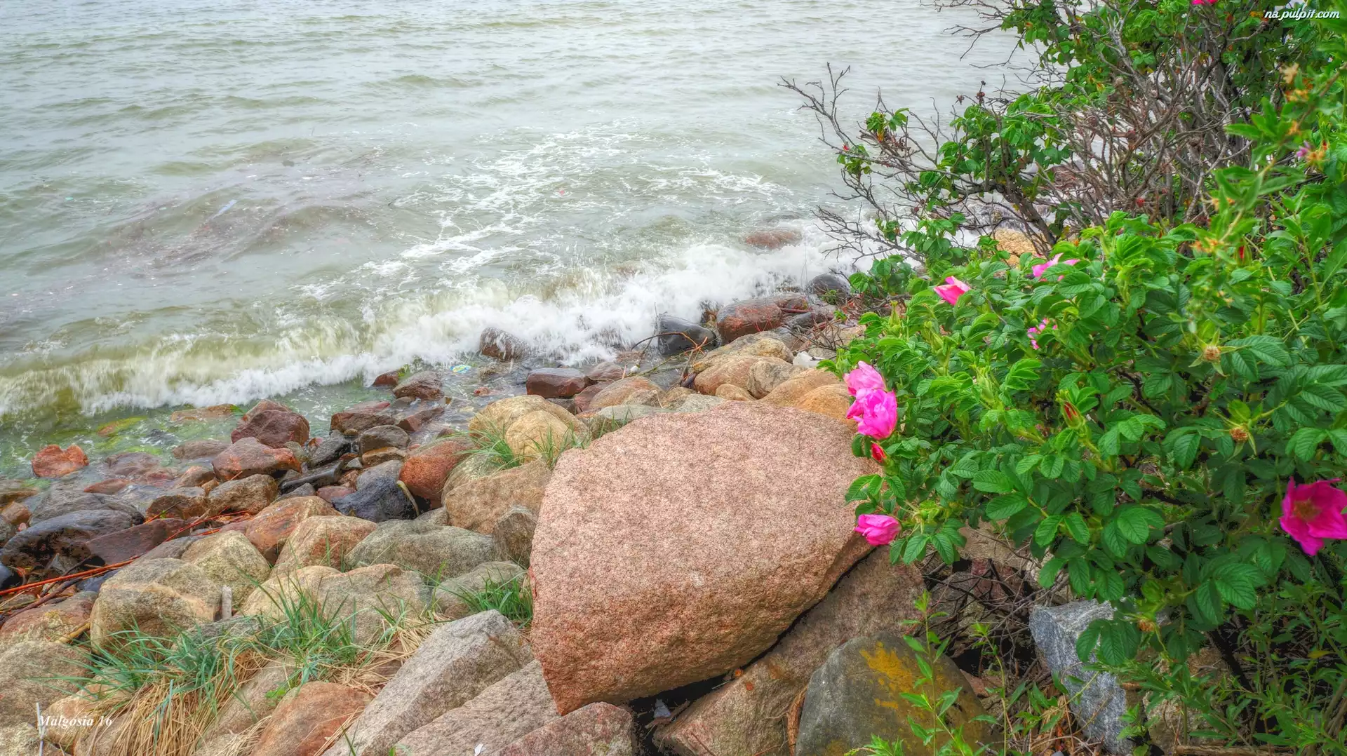 Dzika Róża, Bałtyk, Rośliny, Fale, Woda, Morze, Kamienie Na Pulpit