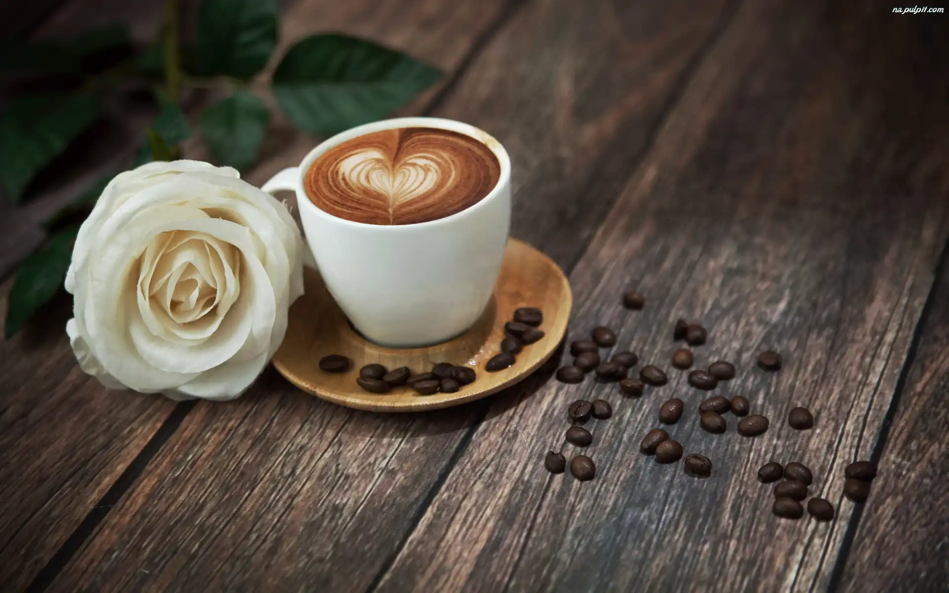 Róża, Filiżanka, Kawa, Biała Na Pulpit