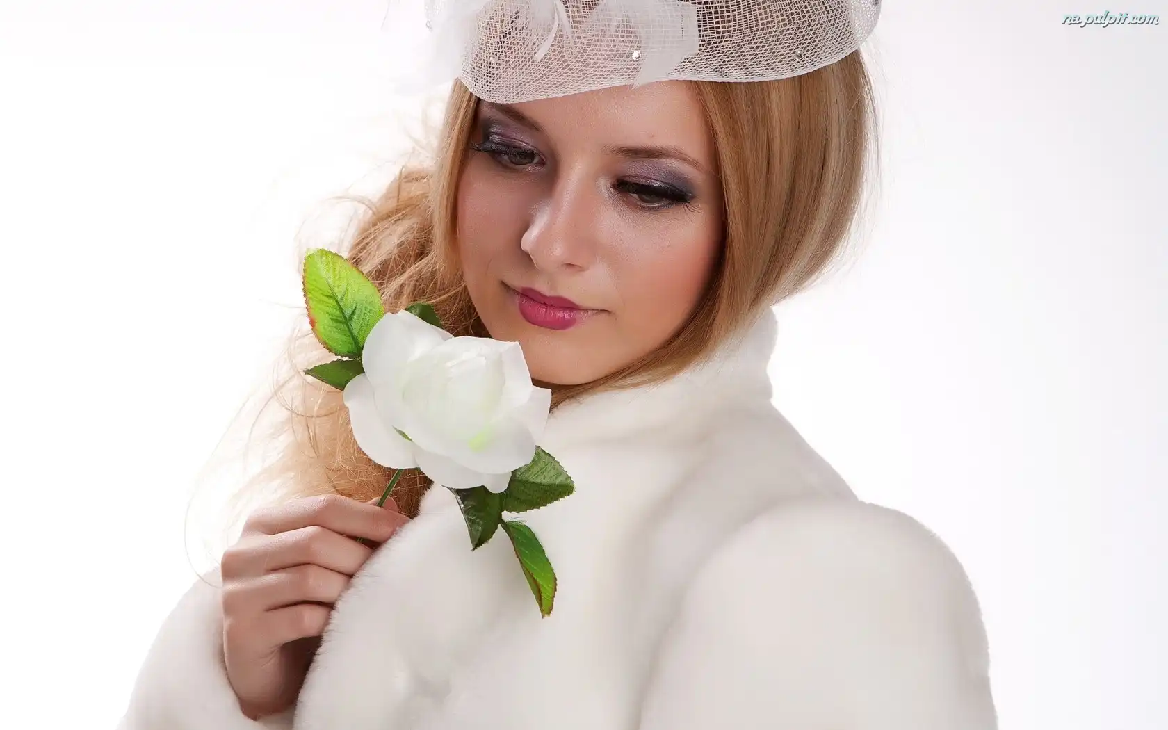 Róża, Kapelusik, Kobieta, Piękna, Biała Na Pulpit