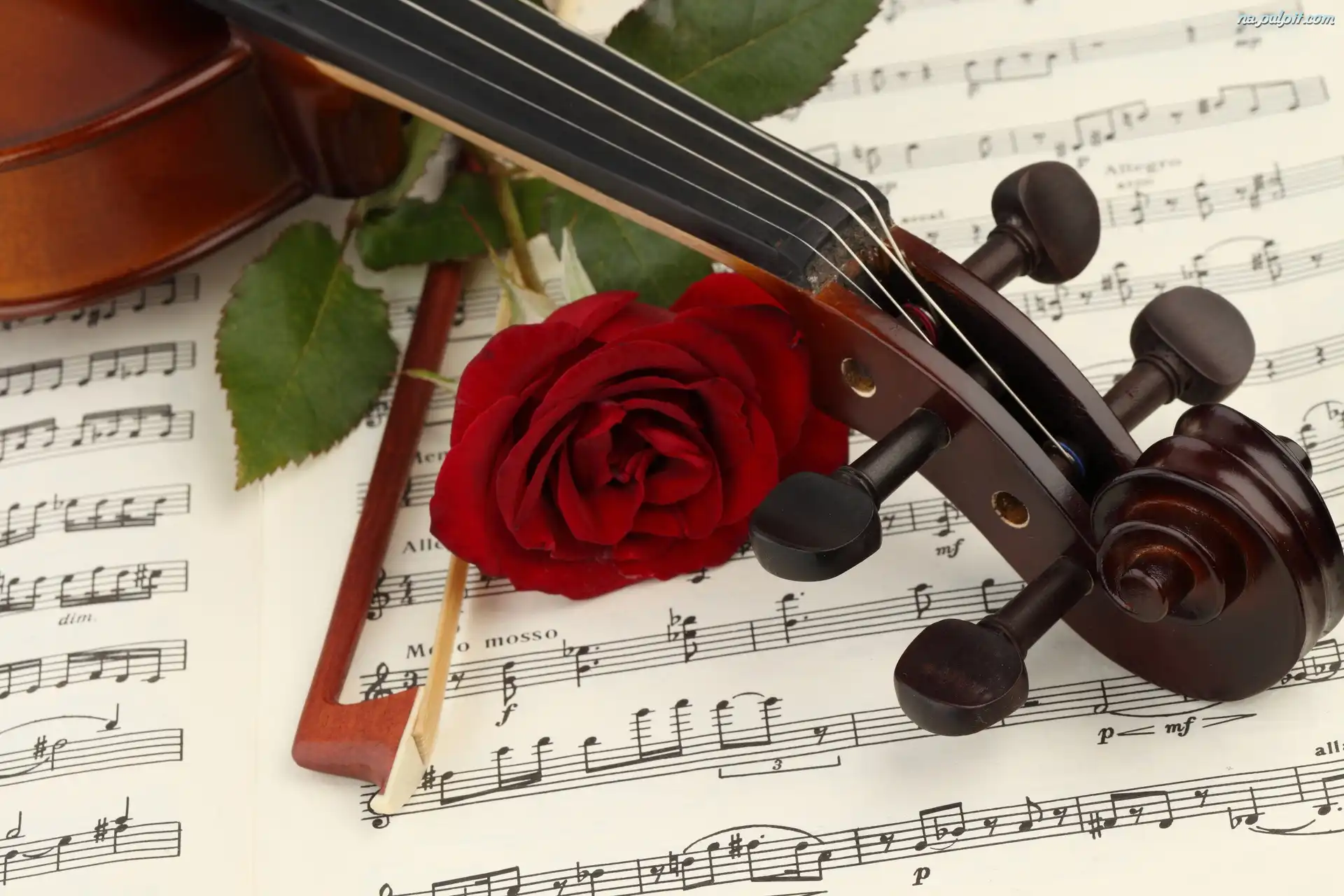Róża, Smyczek, Skrzypce, Nuty Na Pulpit