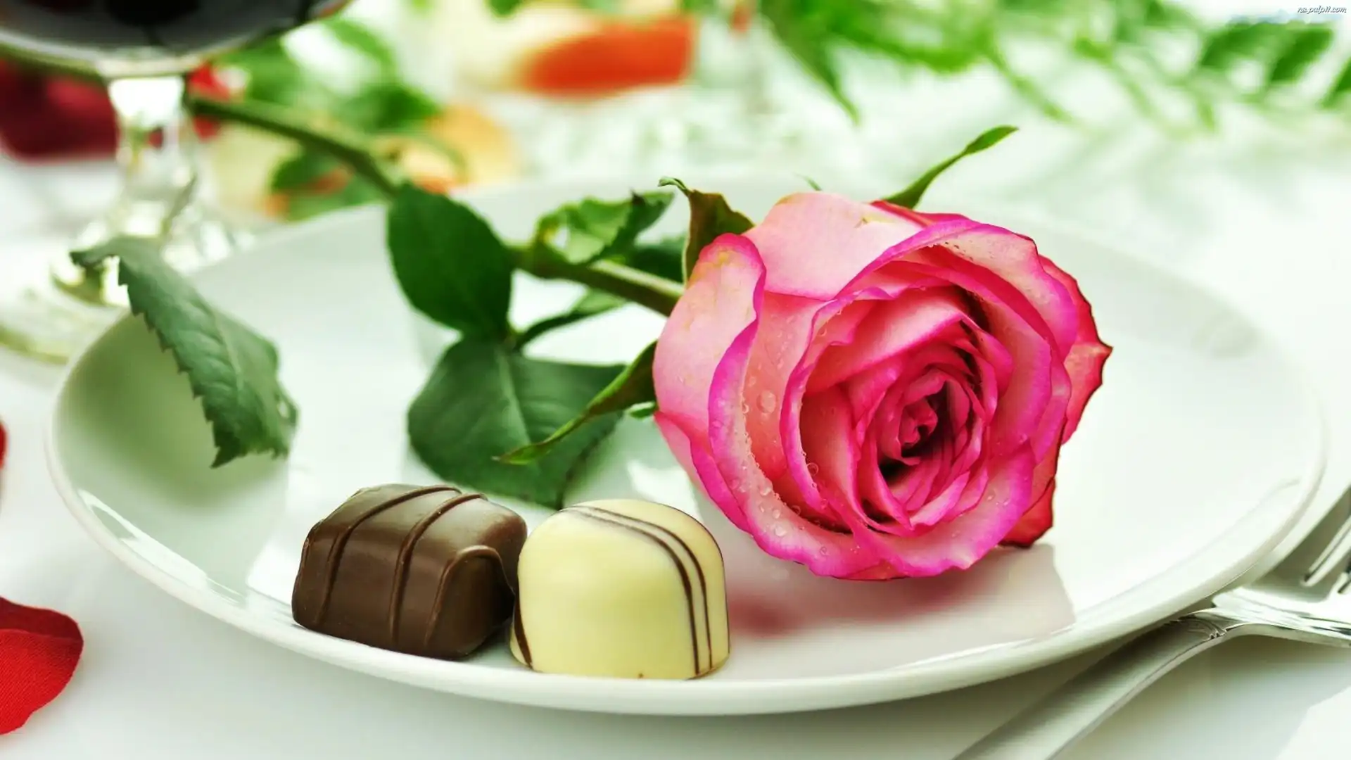 Róża, Czekoladki, Talerz, Piękna
