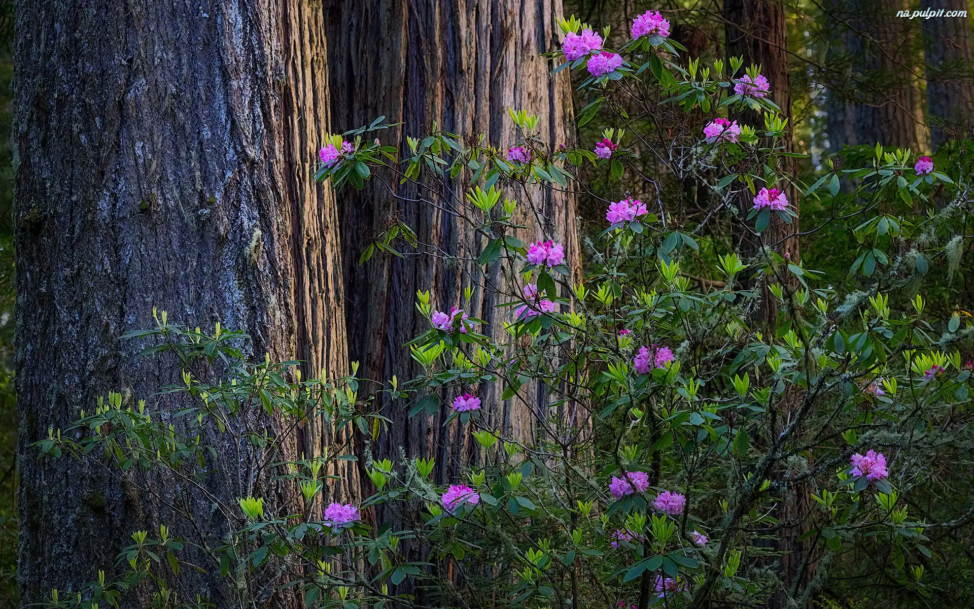 Różanecznik, Fioletowe, Pień, Drzewa, Kwiaty Na Pulpit