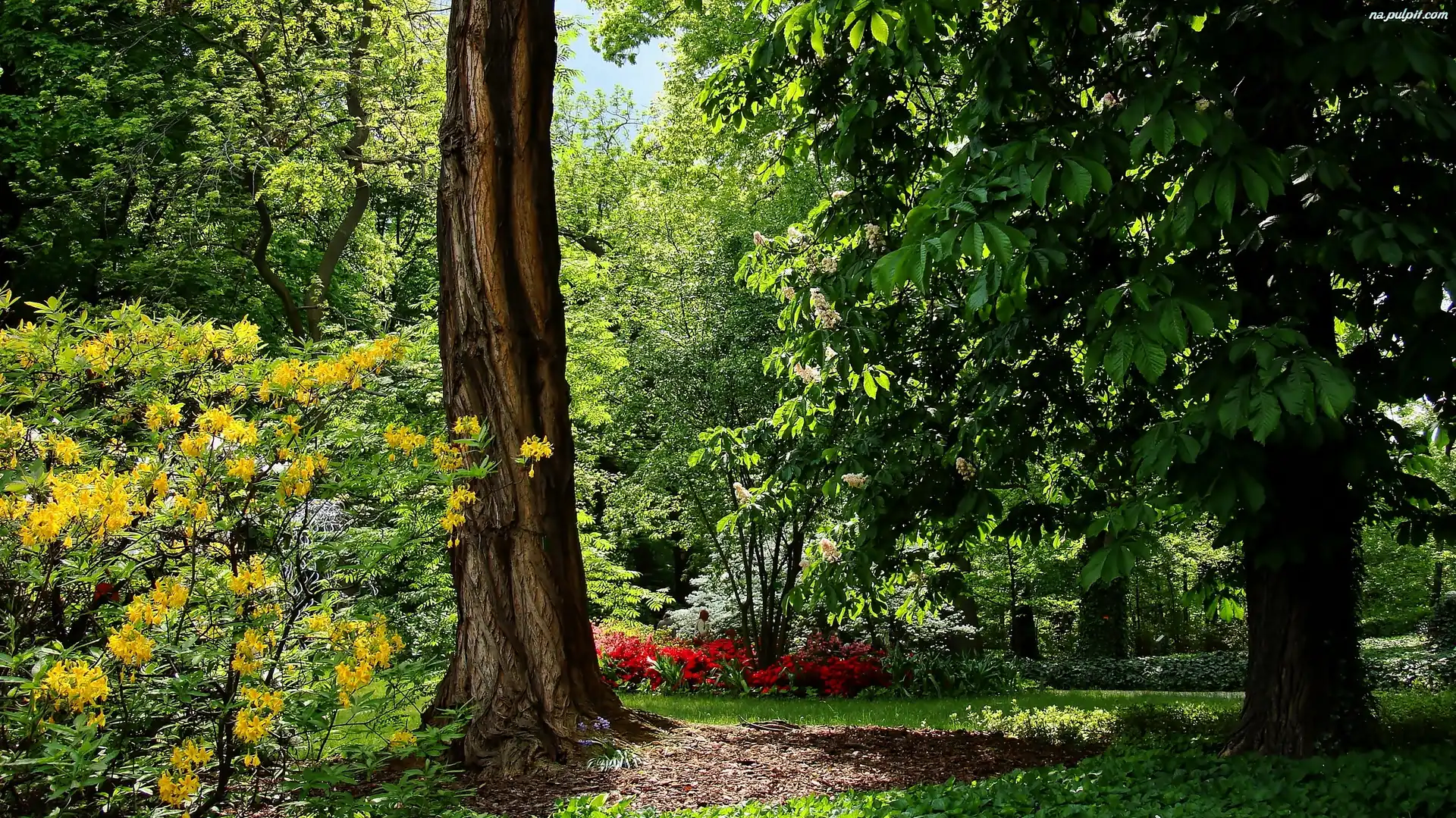 Różanecznik, Park, Wiosna, Drzewa Na Pulpit