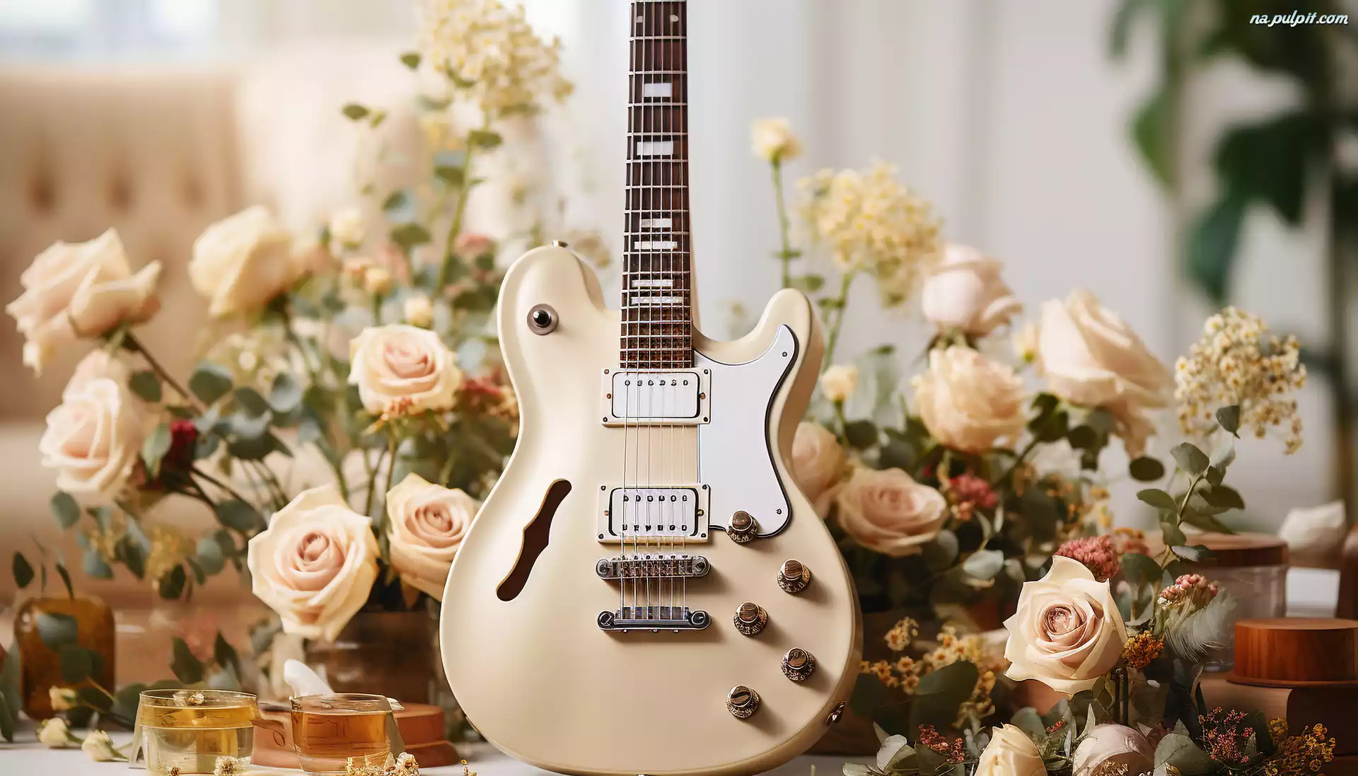 Białe, Gitara, Biała, Róże, Elektryczna, AI