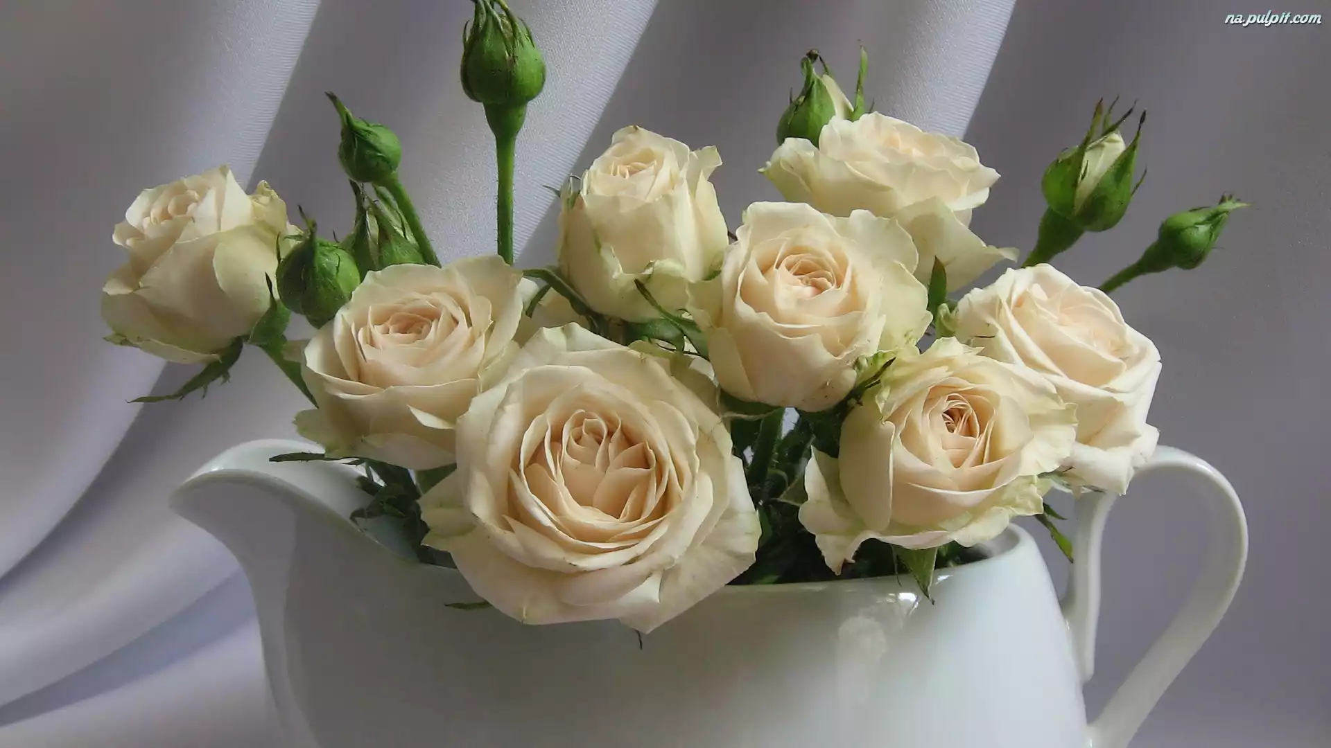 Róże, Dzbanek, Biały, Białe Na Pulpit