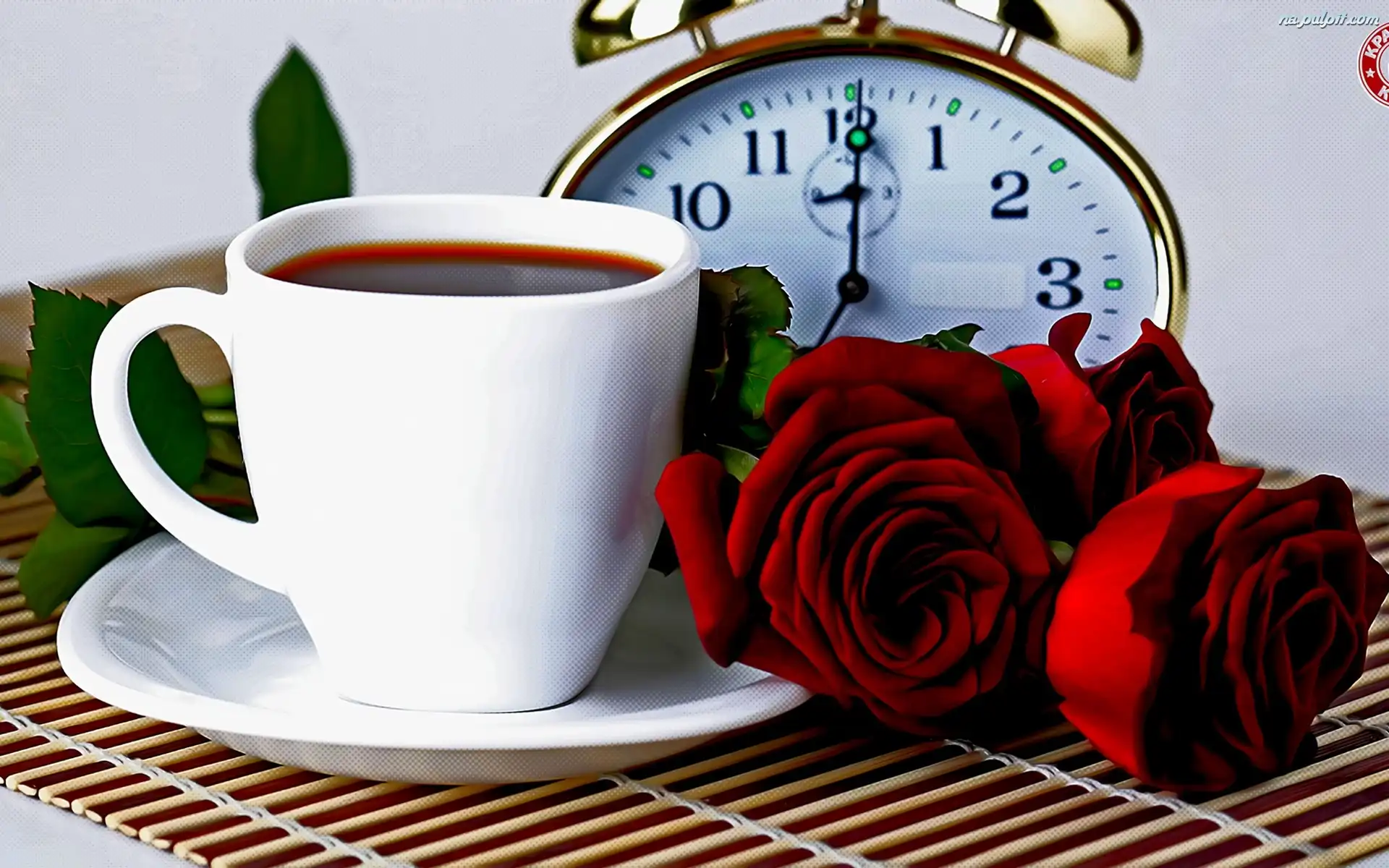 Róże, Filiżanka, Budzik, Czerwone Na Pulpit