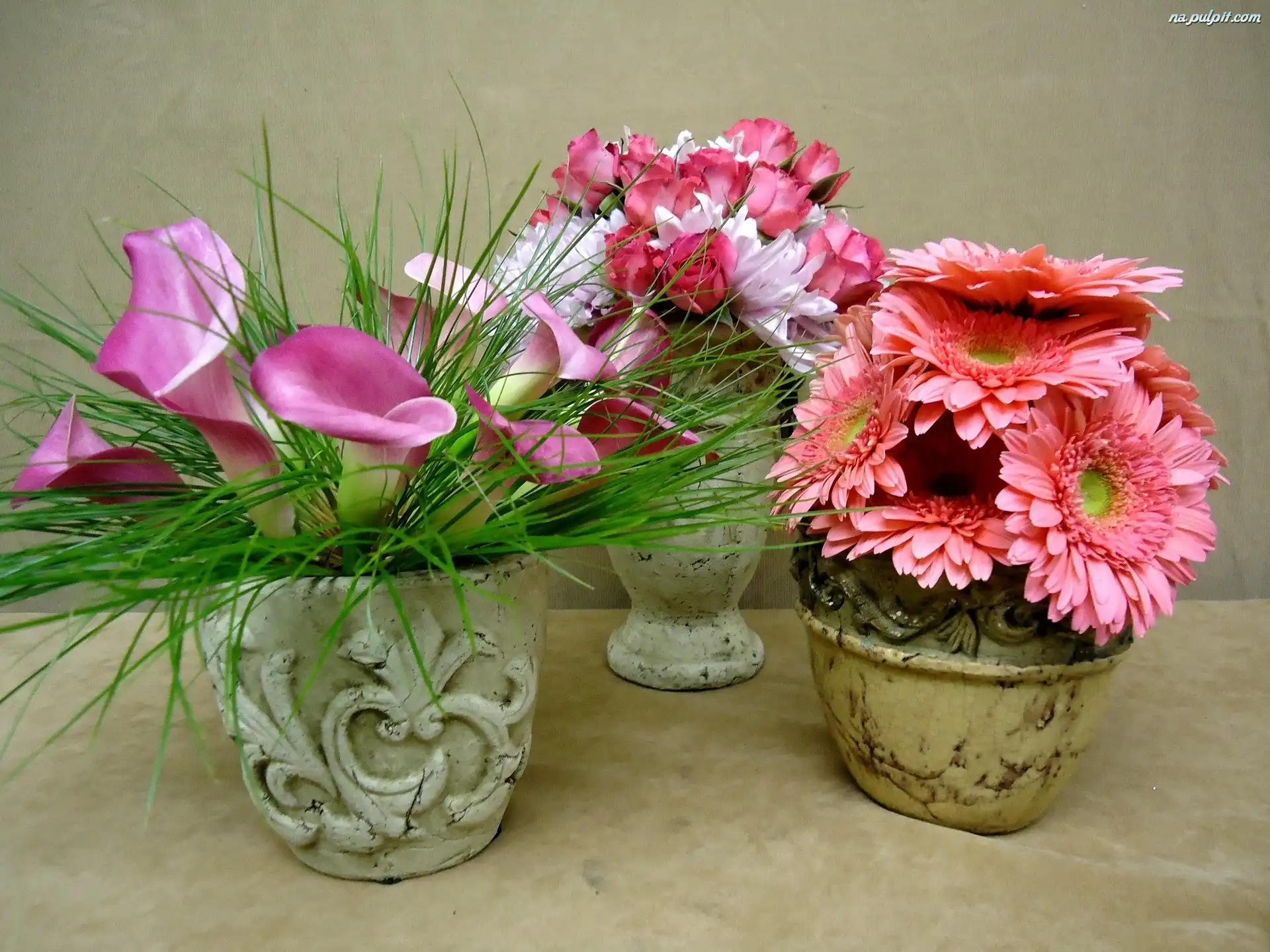 Róże, Gerbery, Kwiatów, Bukiety, Kalie