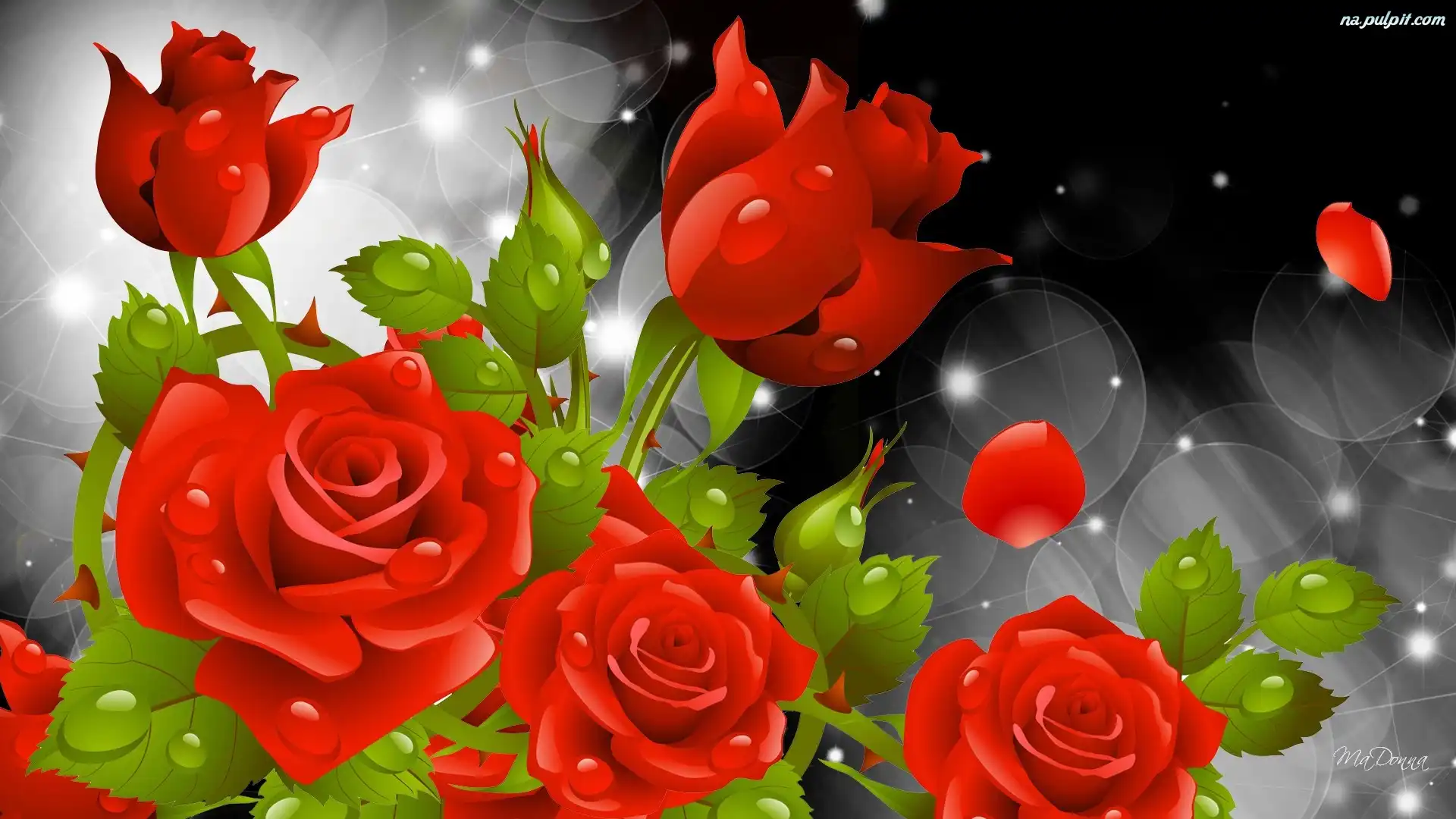 Róże, Grafika, Komputerowa, Krople, Czerwone, Wody