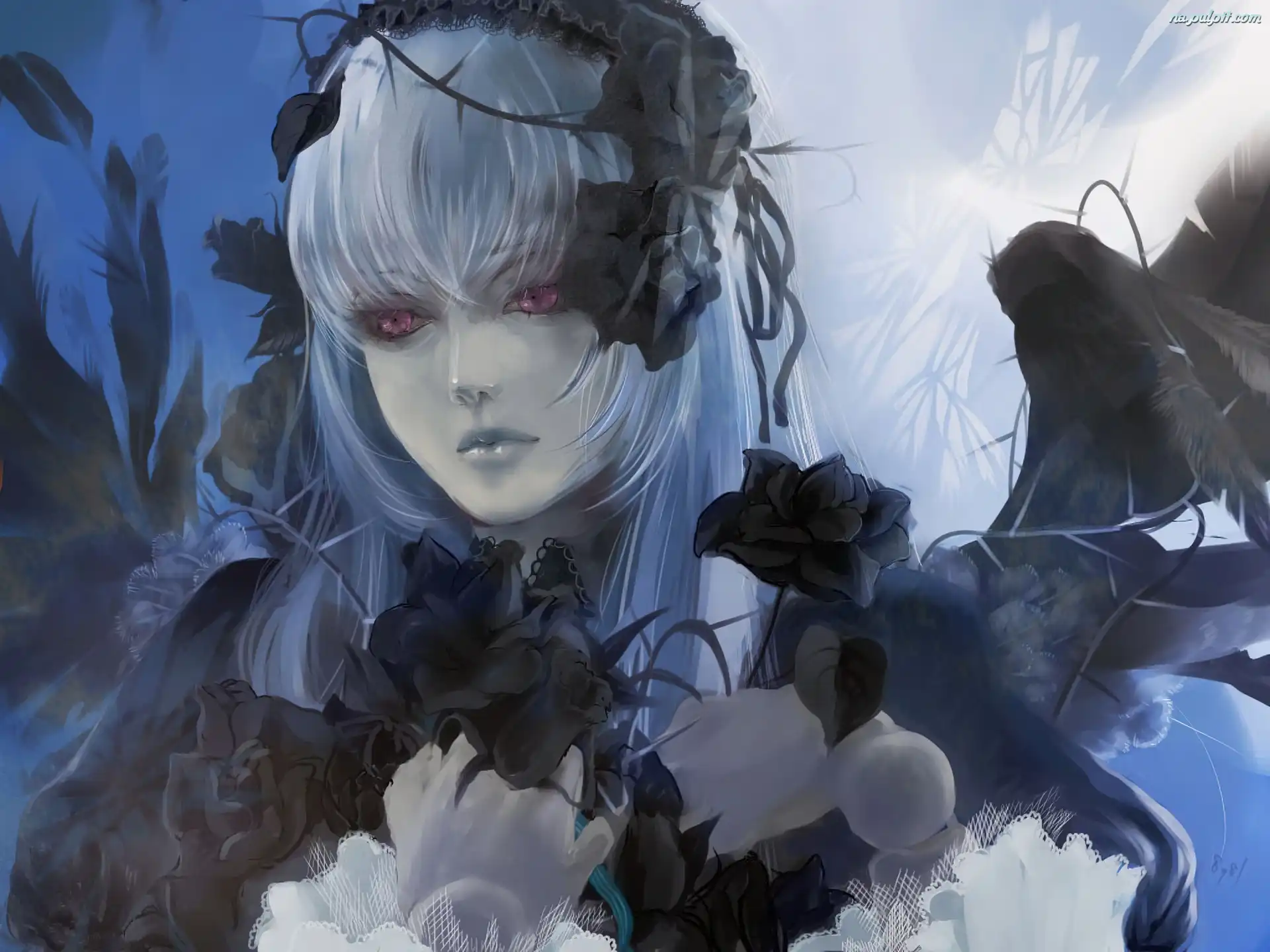 Róże, Biało, Dziewczyna, Czarne Na Pulpit