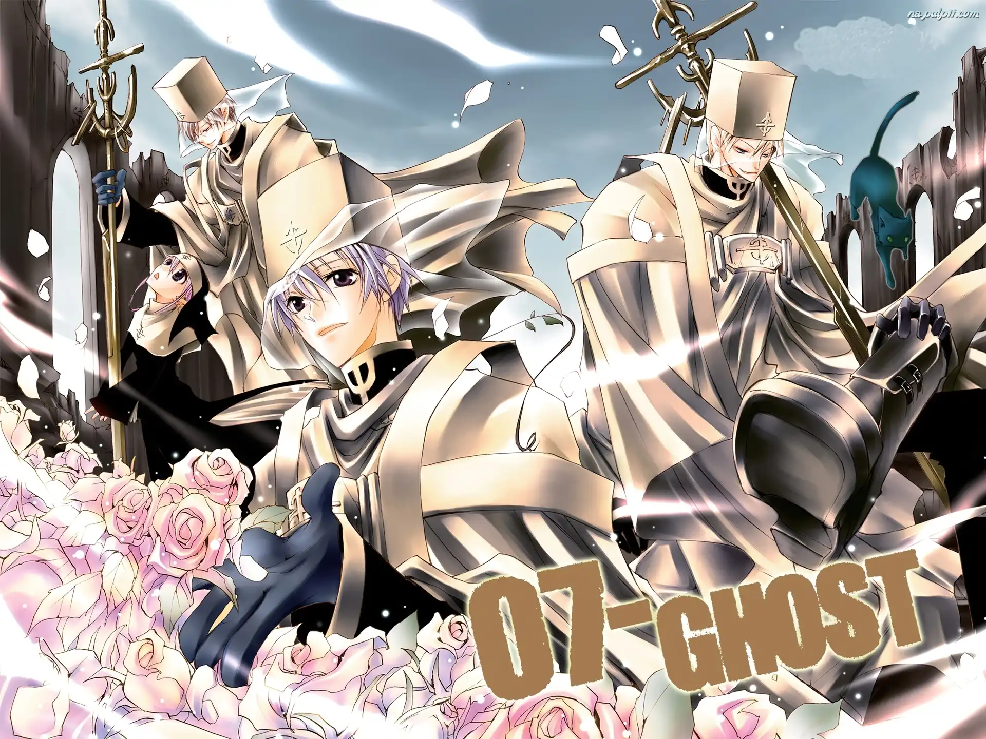 róże, 07 ghost, postacie klatka, mężczyzna, kobieta, 07 ghost, krew ona i on naszyjnik, 07-ghost, on