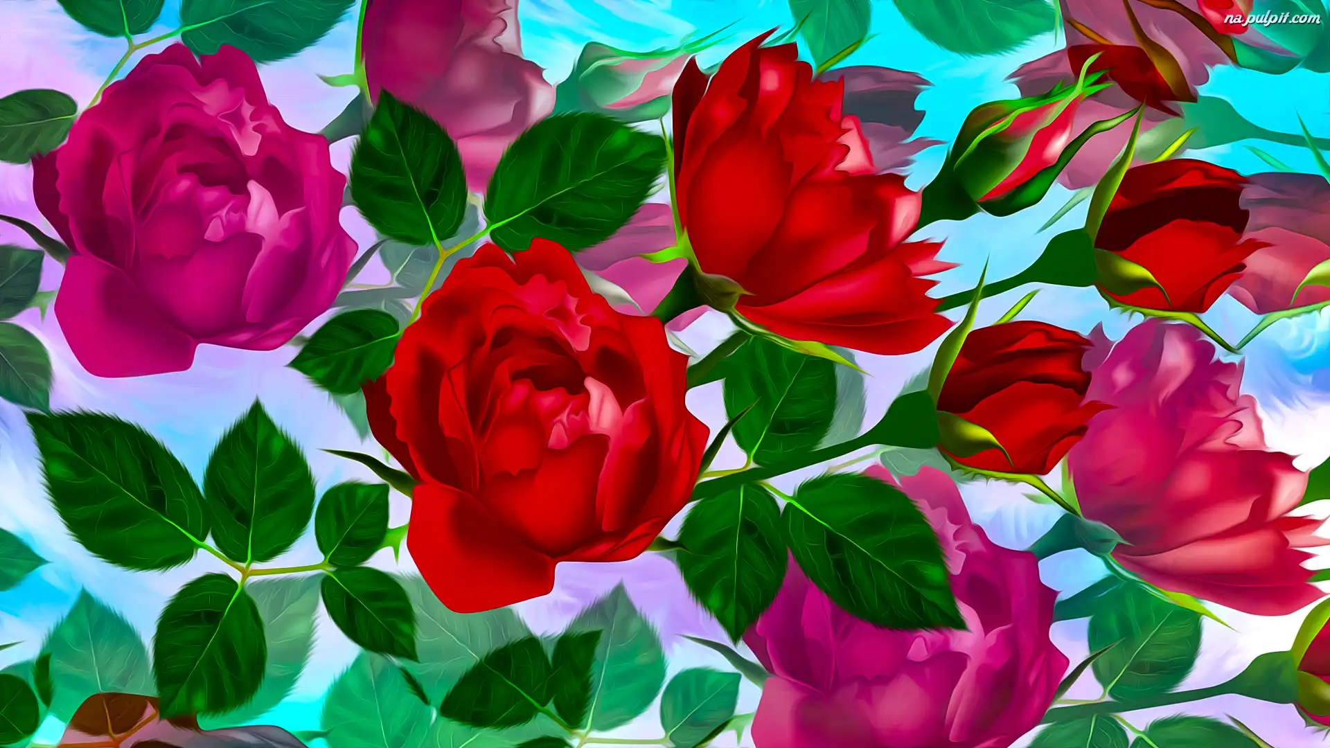Róże, Kwiaty, Grafika, Czerwone Na Pulpit