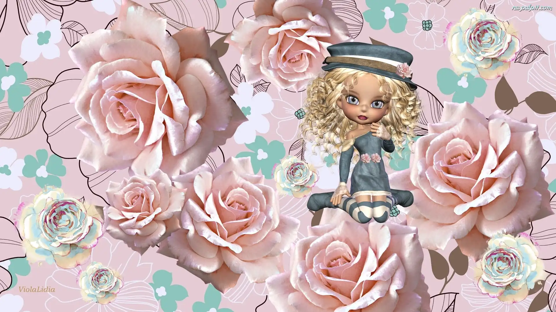 Róże, Laleczka, Grafika, Kwiaty Na Pulpit
