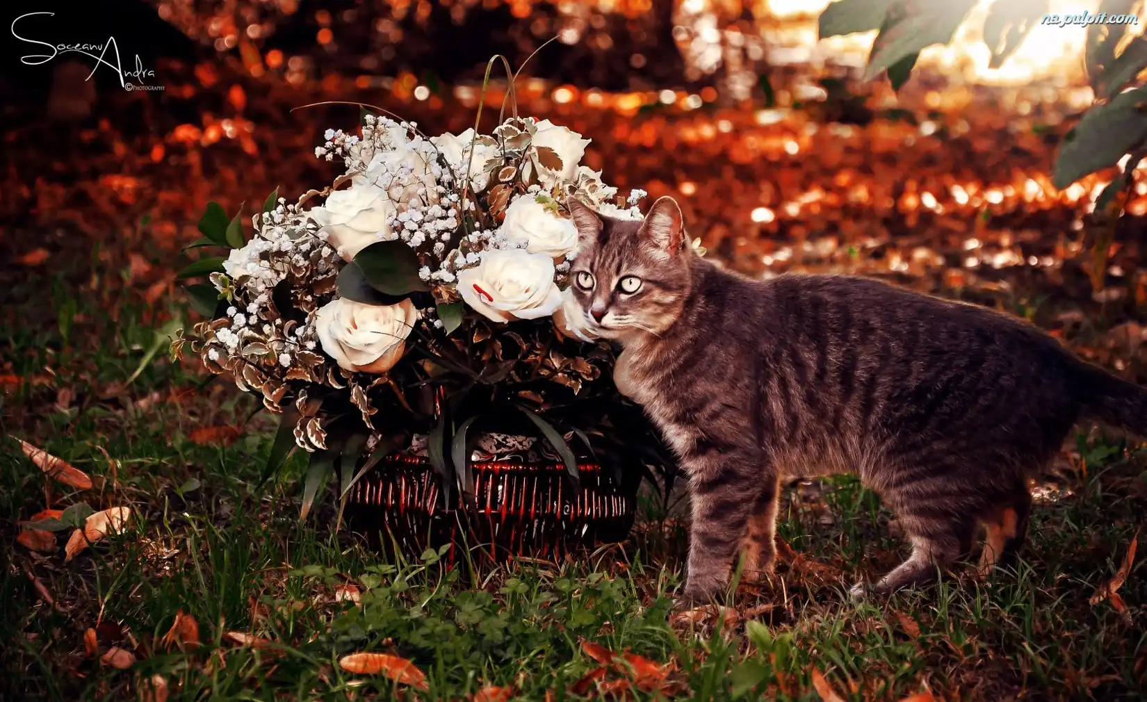 Róże, Koszyk, Kot, Kwiatów Na Pulpit