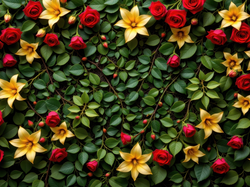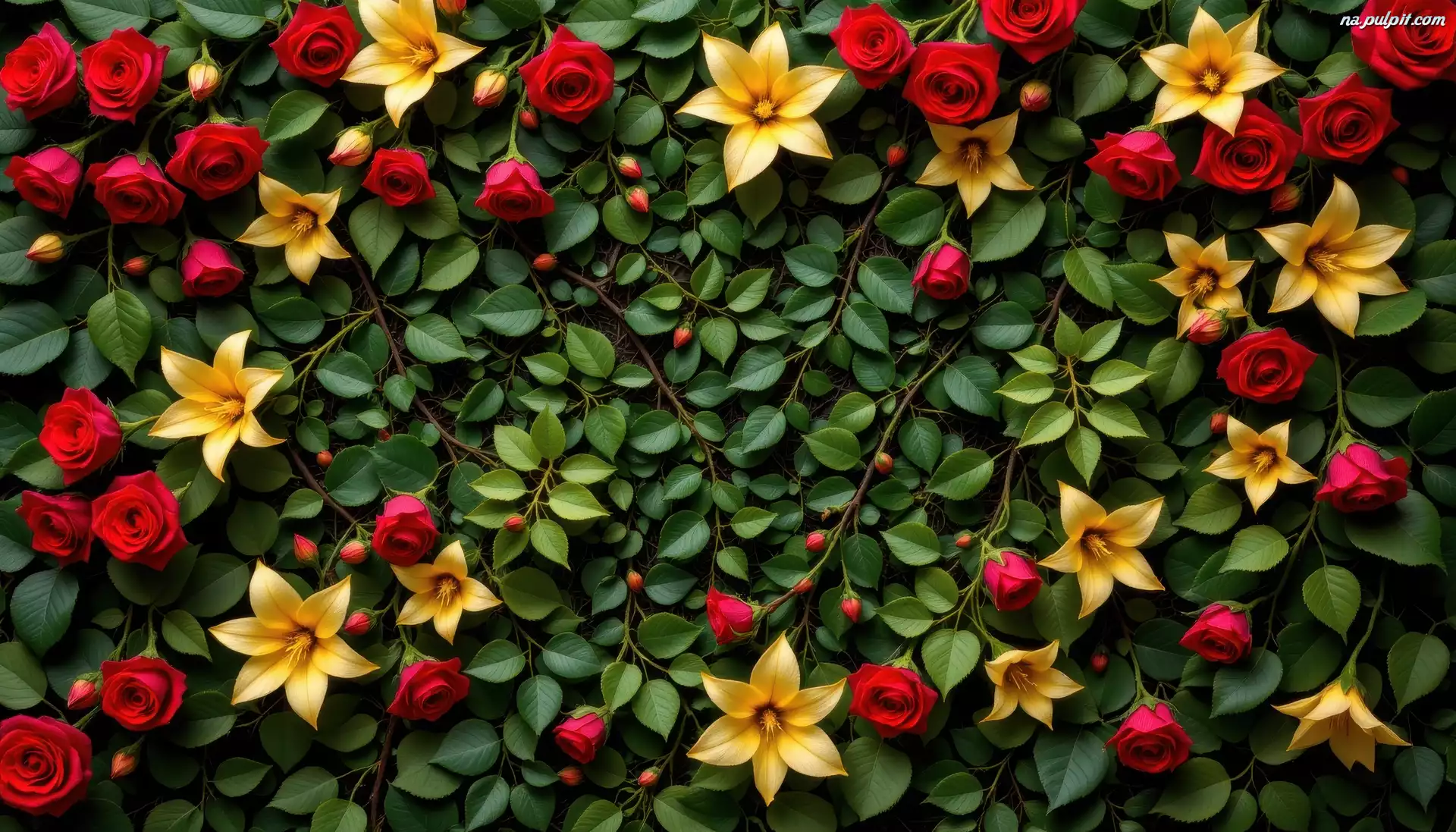 Żółte, Gałązki, Czerwone, Róże, Listki, Kwiaty Na Pulpit
