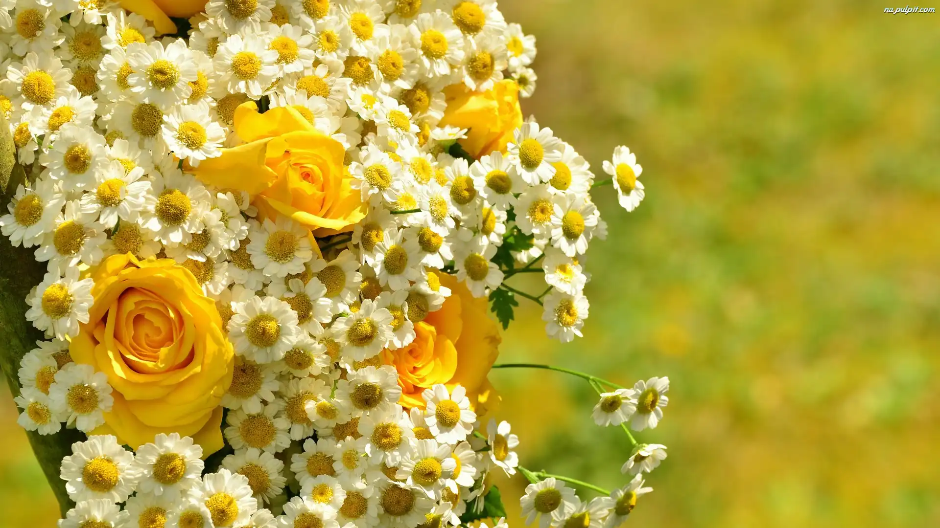 Róże, Rumiany rzymskie, Bukiet, Kwiaty, Żółte