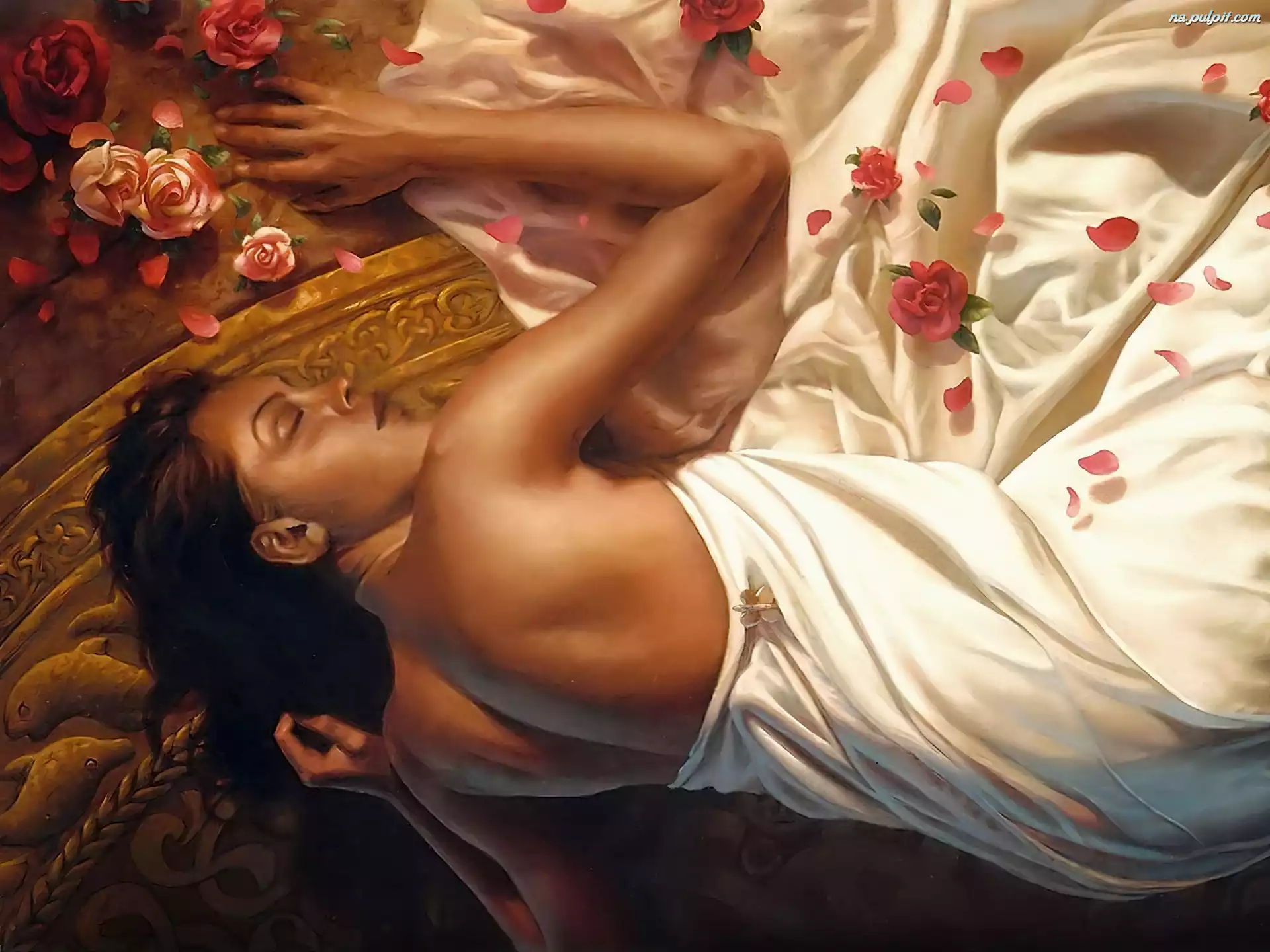 Róże, Kobieta, Śpiąca, Prześcieradło
