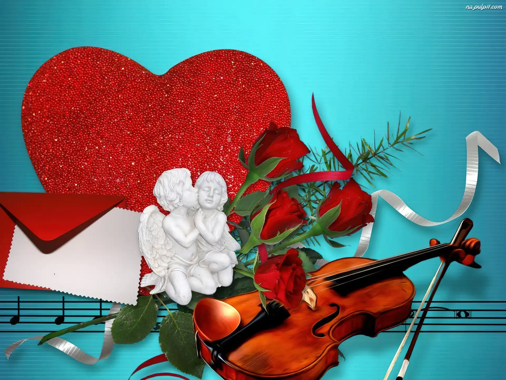 Róże, Skrzypce, Serce, Walentynki, Figurki Na Pulpit