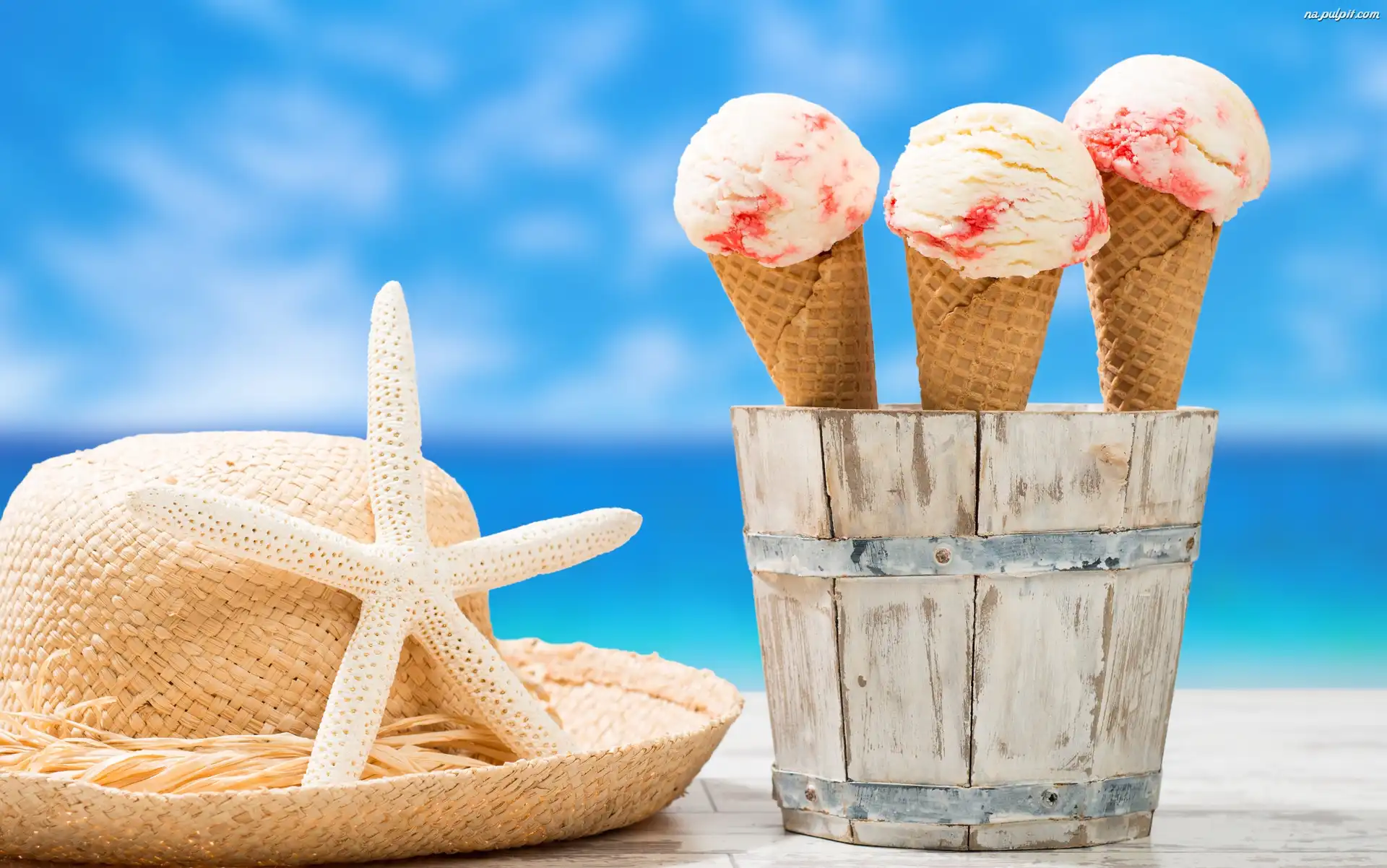 Rozgwiazda, Wiaderko, Wafelki, Lody, Kapelusz
