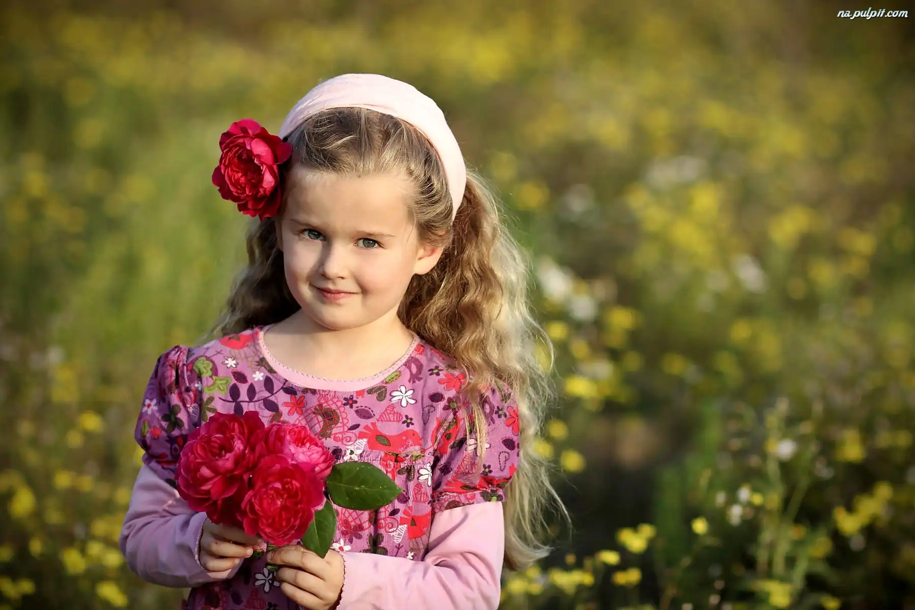Rozmycie, Róż, Bukiecik, Dziewczynka, Zbliżenie Na Pulpit