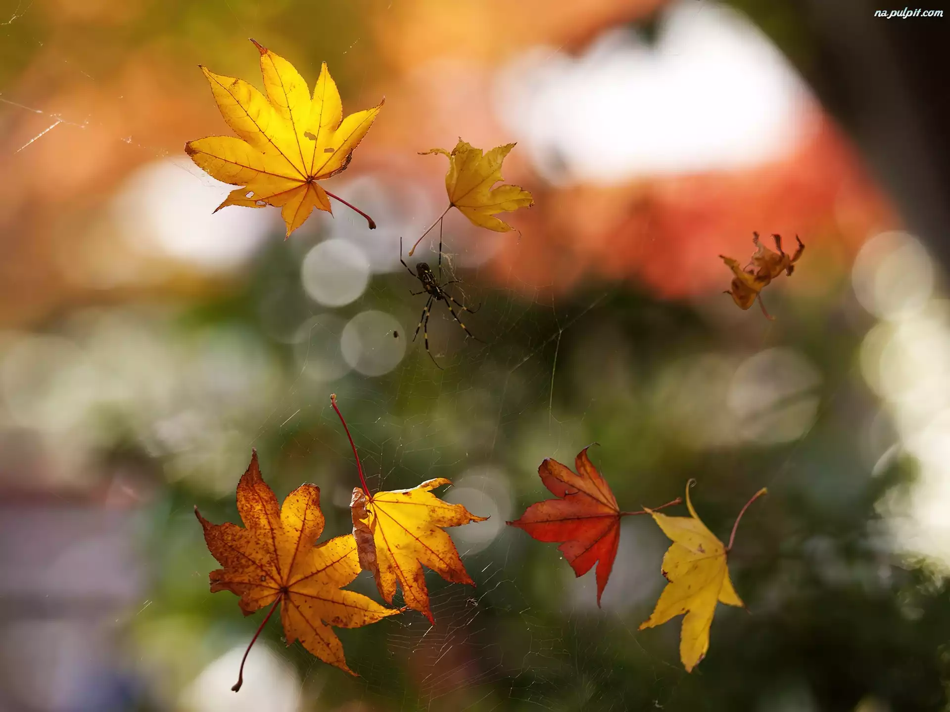 Rozmycie, Pająki, Liście, Jesienne, Pajęczyna Na Pulpit