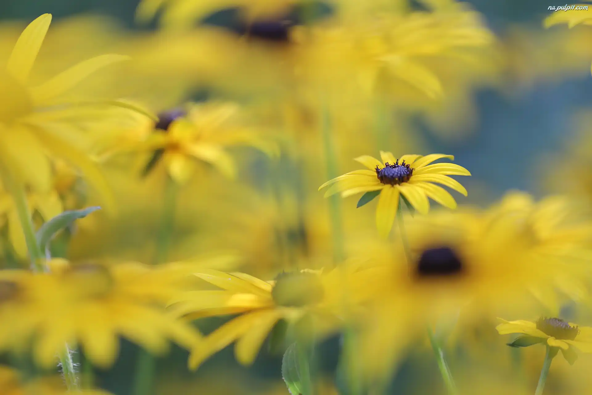 Rudbekia, Żółte, Kwiaty, Rozmycie