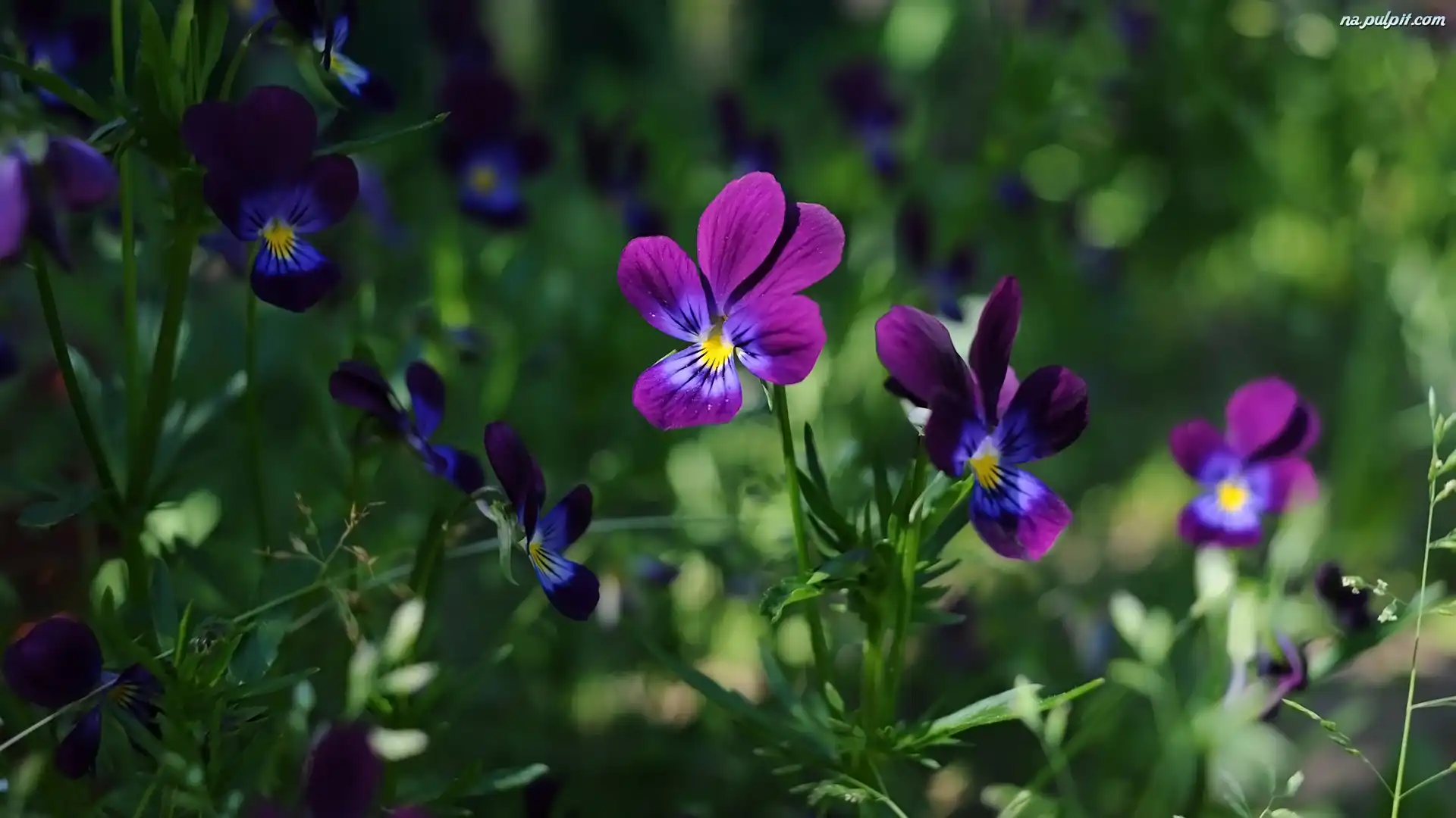Rozmyte tło, Kwiaty, Fiołki rogate Na Pulpit